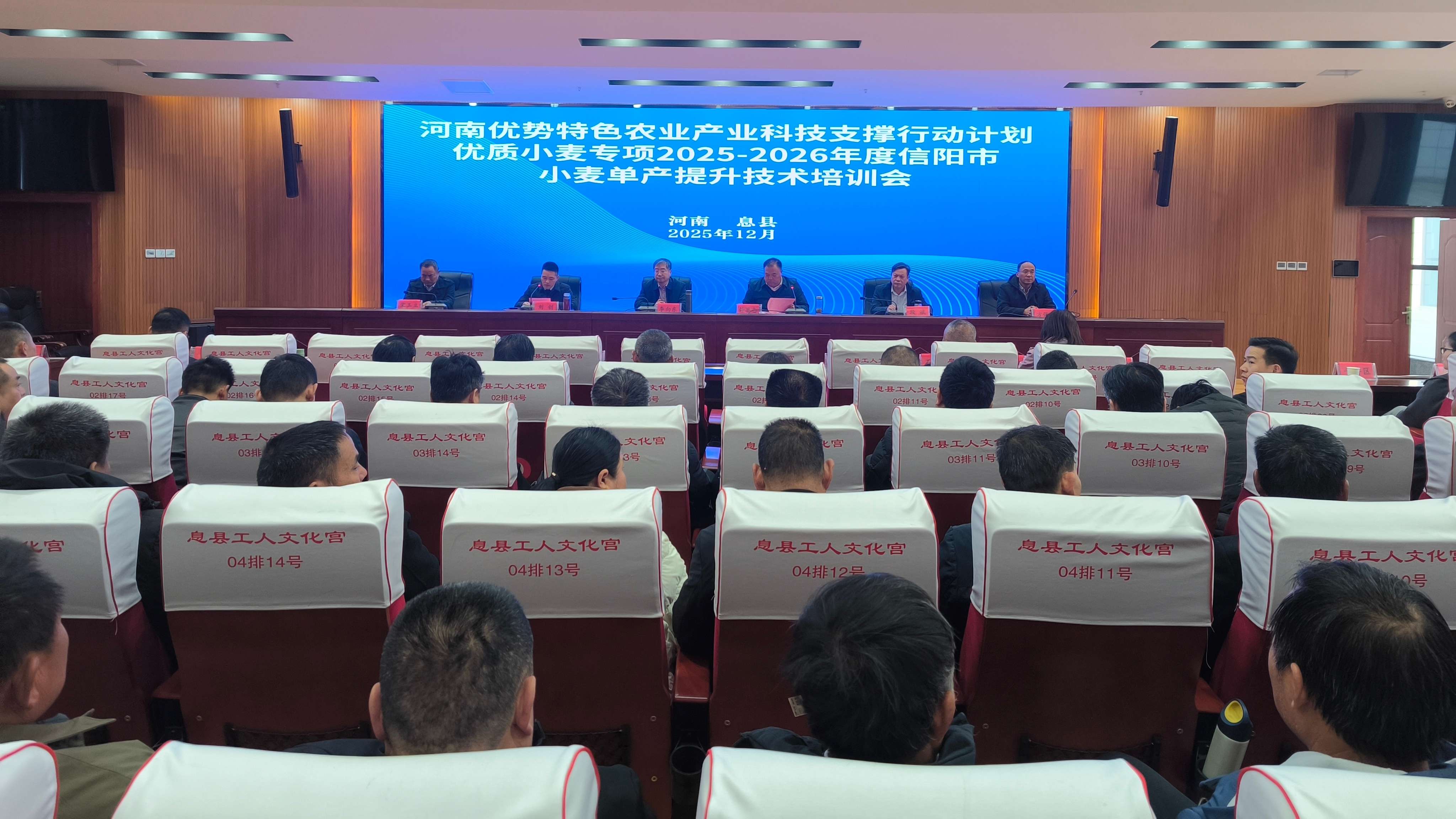 12月10日,由信阳市农业科学院主办的河南省优势特色农业产业科技支撑行动计划——优质小麦专项信阳小麦单产提升技术培训会在息县顺利举行。此次会议旨在针对今年小麦播期较晚、田间苗情复杂等问题,为种粮大户、新型经营主体及基层农技人员提供关键技术指导,保障小麦安全越冬并提升单产水平。