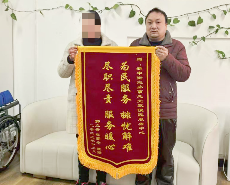 从主动发现到精准帮扶,新申街道以务实高效的服务,切实纾解了群众的急难愁盼。这面锦旗,是群众最直接的认可,也是街道践行“民有所呼、我有所应”服务理念的生动写照。下一步,新申街道将继续坚持需求导向,依托网格化管理,动态掌握群众生活状况,做到早发现、早介入、早帮扶。同时,强化部门协同,整合救助资源,推动民生服务向精细化、专业化、个性化发展,切实做到解民忧、纾民困、暖民心。(童茂)