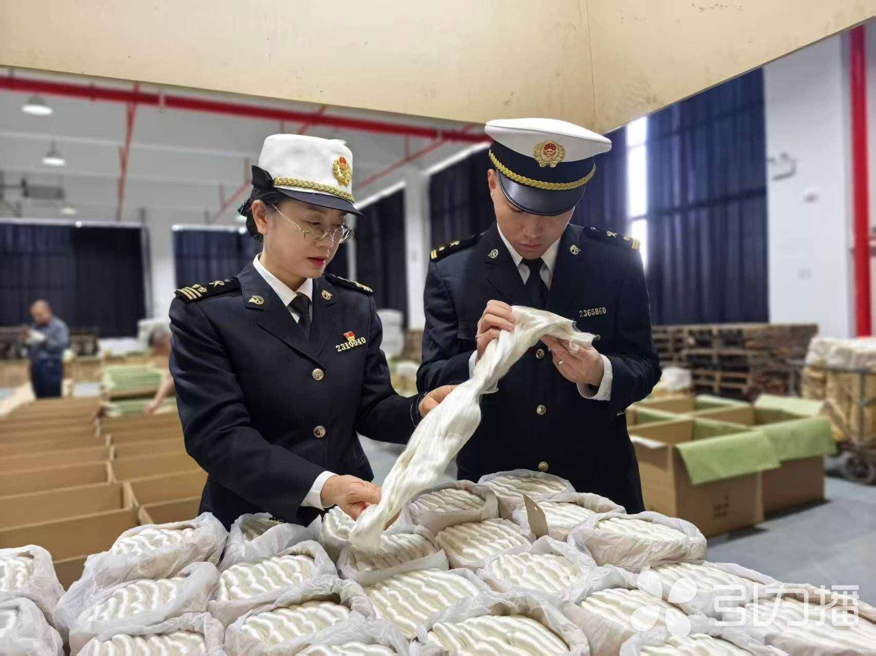 工作人员查验货物。吴江海关供图