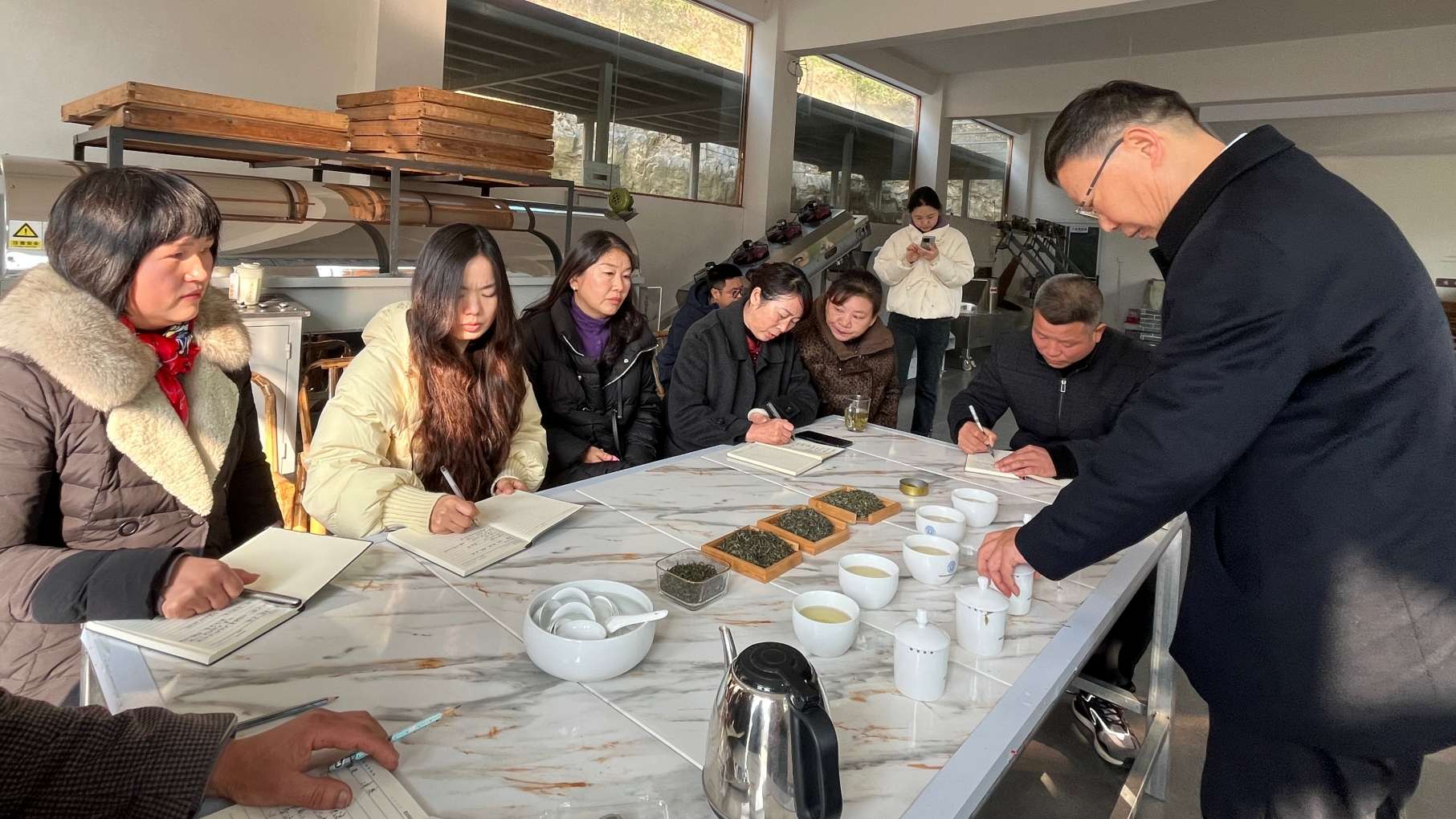 12月18日,一场干货满满的茶叶评审科普讲座,在山脚下的浉河区董家河镇塔耳湾村天云山茶庄园生产车间热闹开讲。河南省首席科普专家、大别山实验室副主任、信阳农林学院二级教授郭桂义专程下乡,面对面为10多位茶农传手艺、解疑惑。