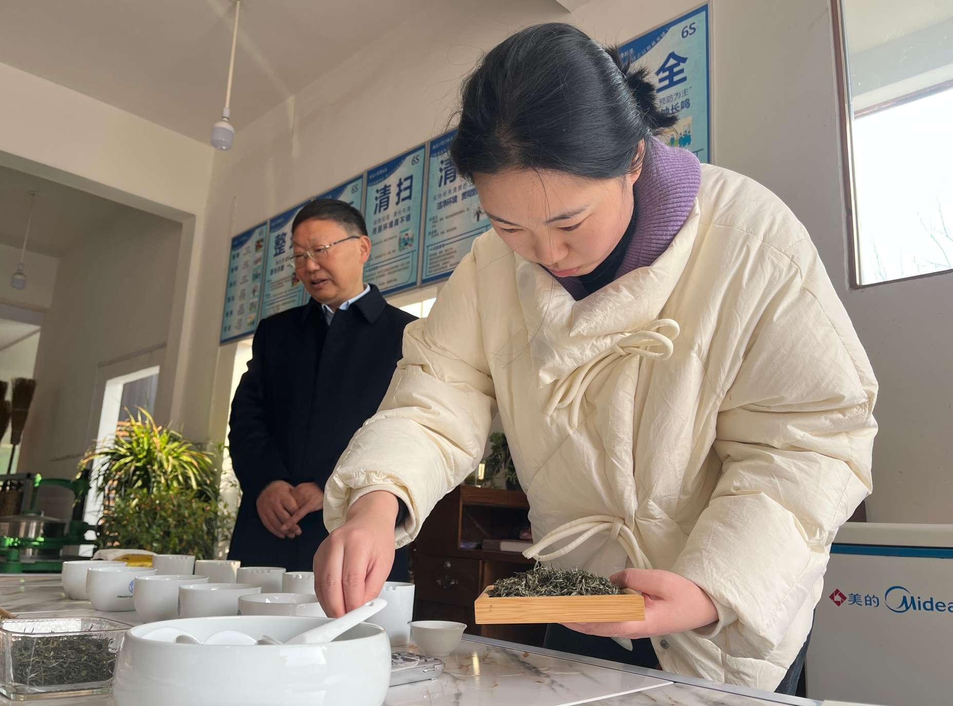 信阳农林学院茶学院的教师代表在现场忙前忙后,有的在一旁精准称茶,有的把控水温,有的计时……评审杯里,茶叶在热水中缓缓舒展,浓郁的茶香一缕缕飘散开来。茶农们听得全神贯注,时不时凑近观察茶叶形态,互相低声交流心得,现场学习氛围格外浓厚。