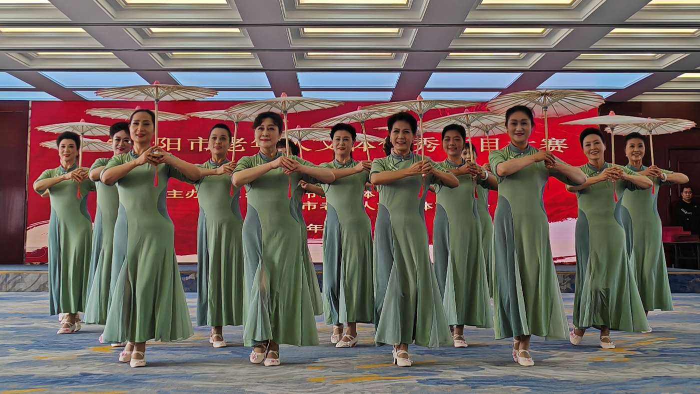 比赛现场乐声悠扬,掌声不断。平桥区代表队的《茶山绿了》以轻盈舞步、衣袂翩跹,生动勾勒出一派生机盎然的茶山风光,仿佛茶林间的精灵跃然台上;新县代表队的《时代感》节奏欢快、活力洋溢,展现了新时代老年人紧跟时代、乐观生活的精神面貌;商城县代表队的《丰收中国》则以喜庆的服饰、热情的舞蹈,将丰收的喜悦与对祖国的祝福演绎得淋漓尽致,将现场气氛推向高潮。