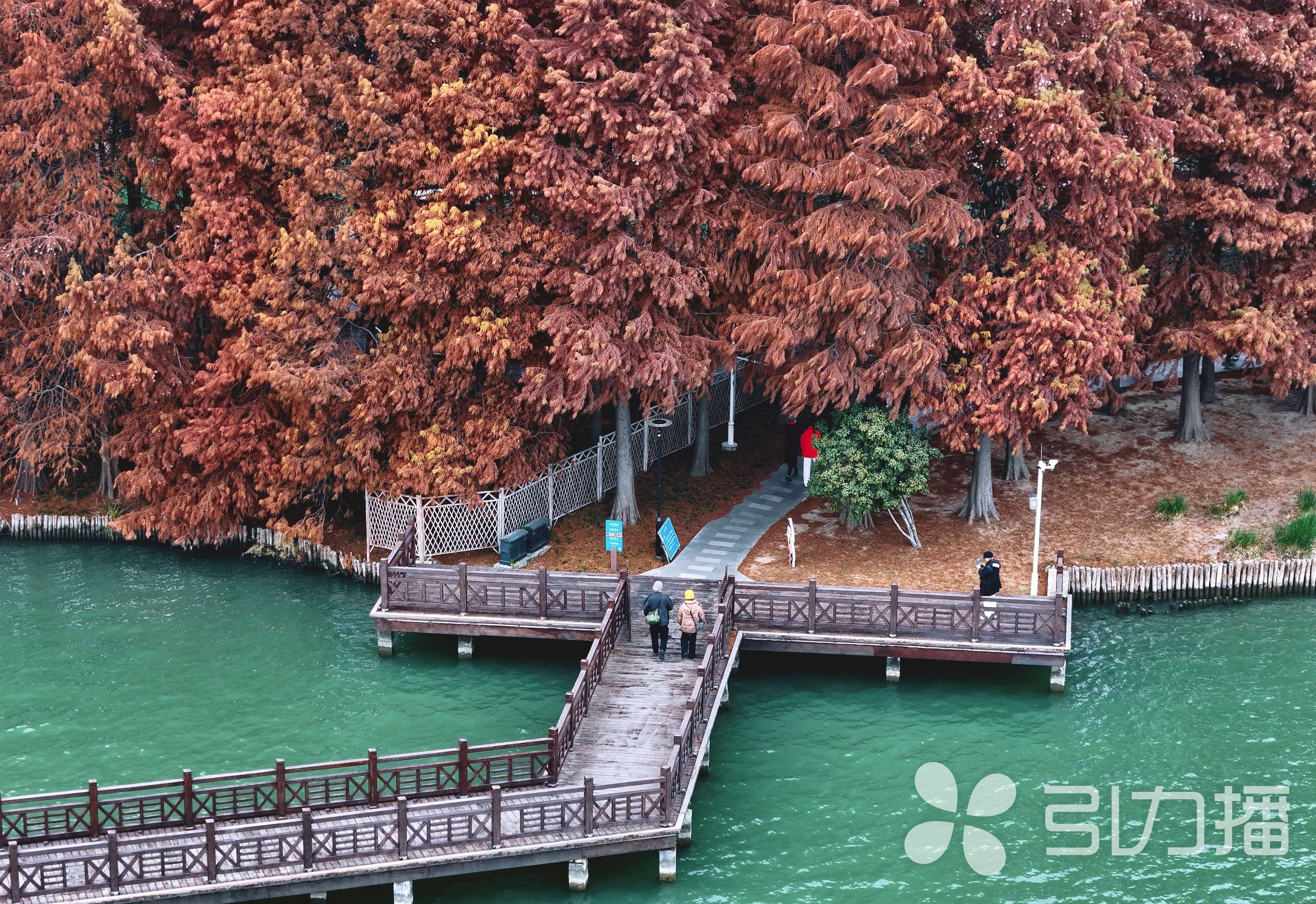 初冬的石湖,是一幅摊开在天地间的长卷。远山还眷恋着最后的斑斓,层林尽染,那深深浅浅的红与黄,还未褪尽。最惹眼的,是水边那一列列水杉,笔直站立,给湖岸镶了一道温暖的绒边。湖心便是天镜阁,连同那些错落的亭台楼阁,白墙黛瓦倒映水中,与红杉、与远山交织。(苏报融媒记者 王亭川/文/摄/摄制)