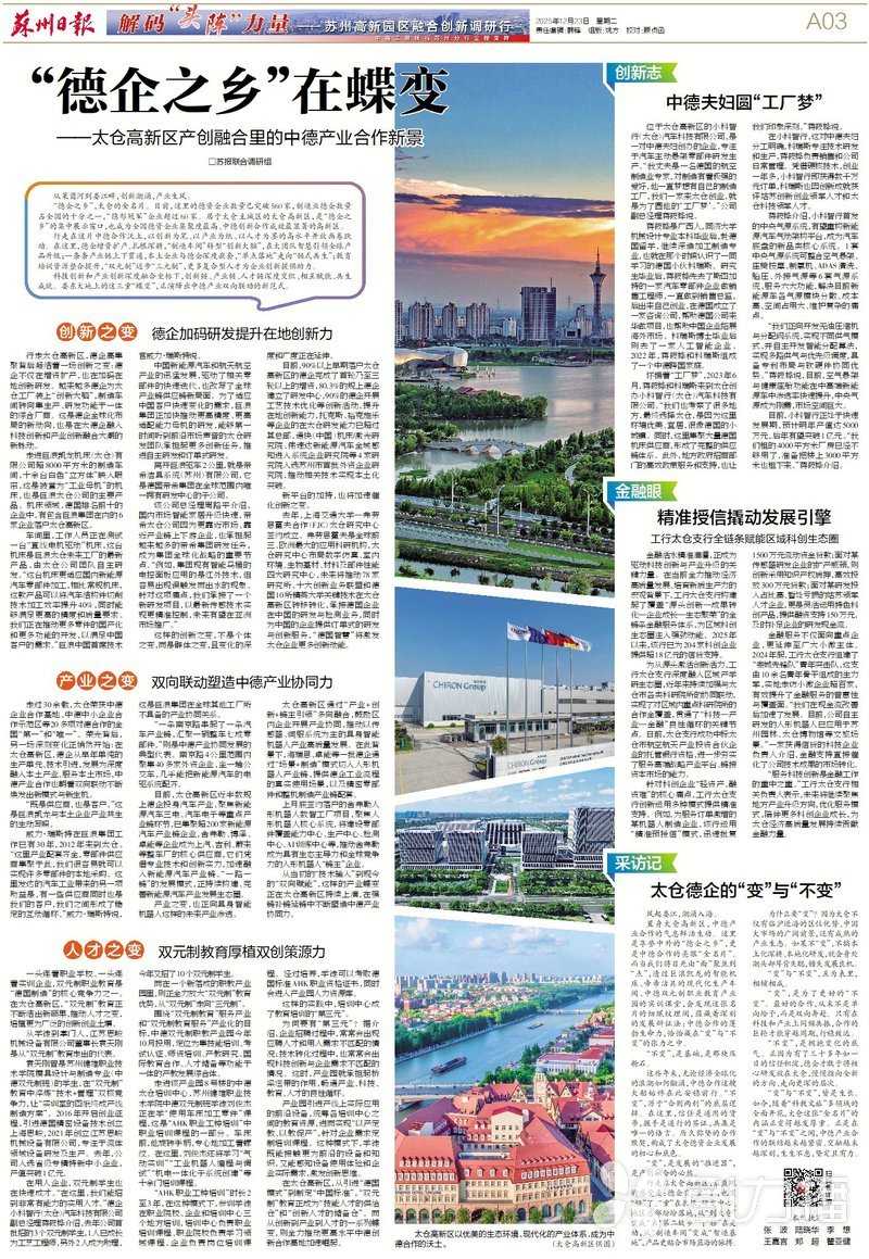 从当初的“技术输入”到现今的“双向赋能”,这样的产业蝶变正在太仓高新区持续上演,在强链补链延链中不断塑造中德产业协同力。