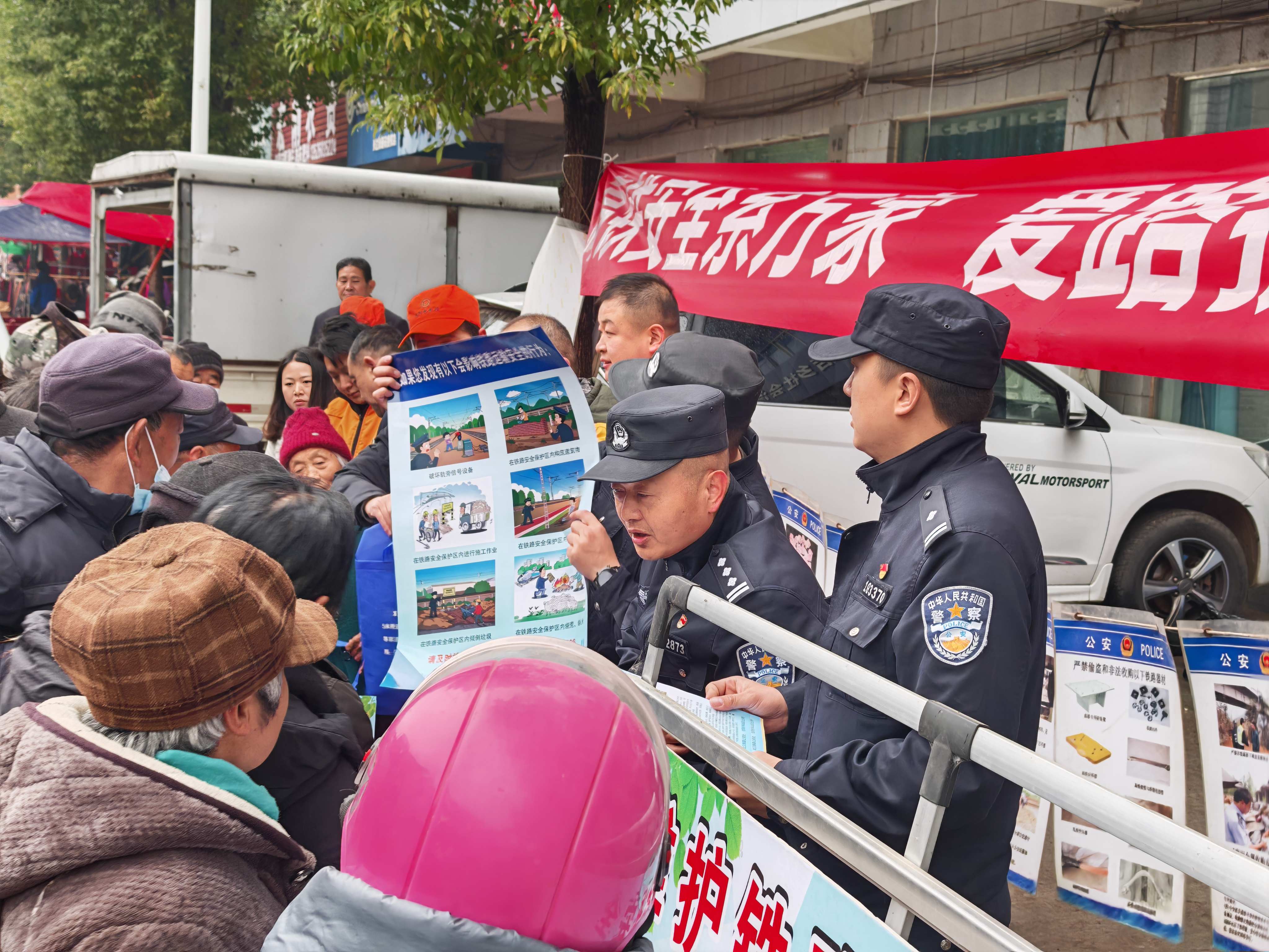 为进一步增强铁路沿线群众爱路护路意识,筑牢铁路运输安全防线,12月23日上午,信阳东站派出所联合信阳东车站,驻马店西工务车间、电务车间、供电车间、通信车间等单位,会同信阳市胡店乡政府、派出所,在胡店乡集市及沿线中小学开展了以“知路爱路护路 共筑平安防线”为主题的宣传活动。