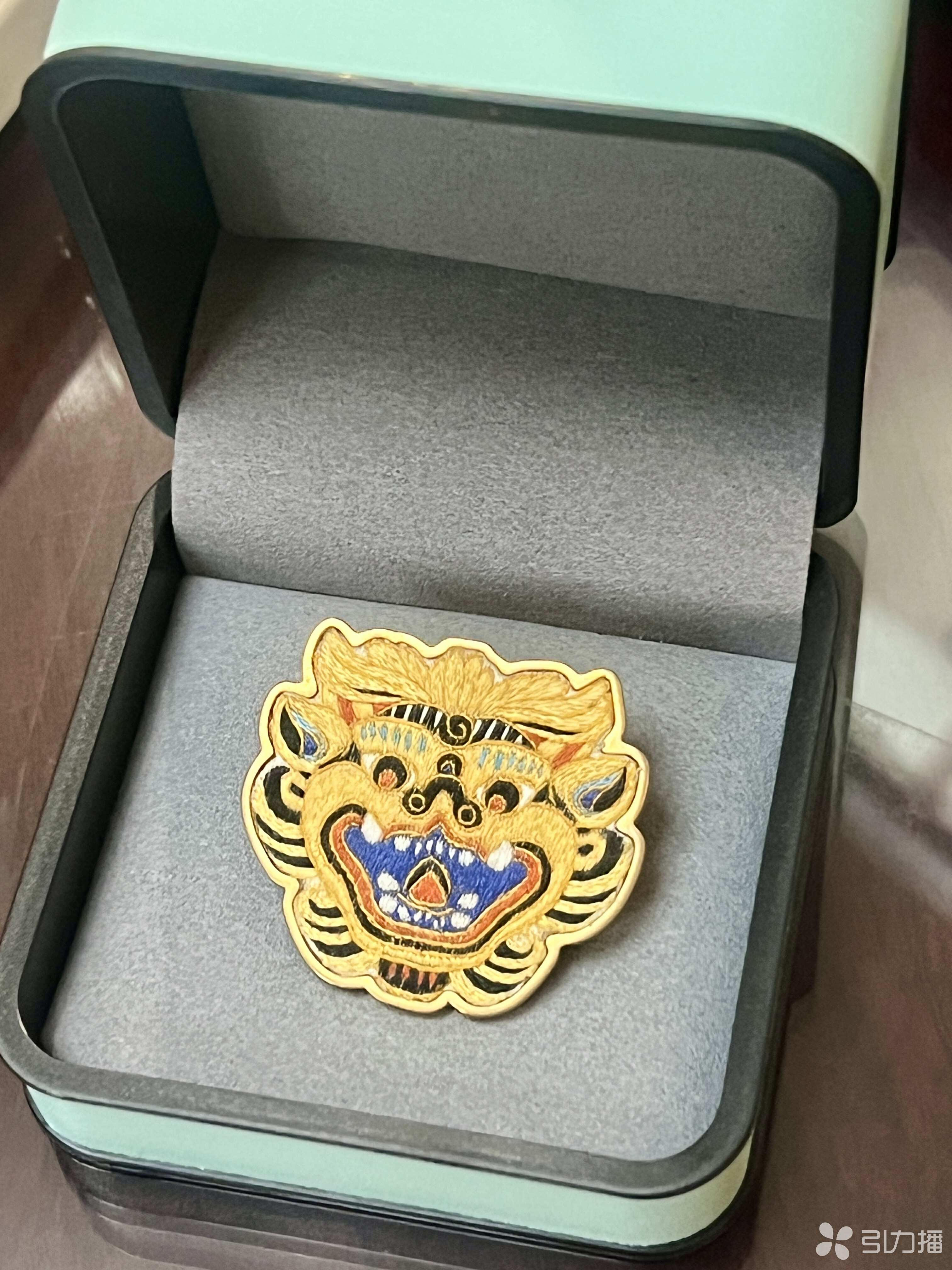 最让她有成就感的,是将西安瓦当纹样“变”成文创产品的尝试。去年底,母亲从山西交流学习归来,带回传统瓦当绣的灵感,潘乃舒却想“换个思路”:“传统瓦当多是灰色调,复刻虽还原历史,但年轻人可能不喜欢。”她将瓦当纹样简化成色块拼接,选用金色蚕丝线为主色,搭配亮眼的撞色,让原本古朴的兽面瓦当瞬间“鲜活”起来。更巧的是,她还将绣片做成胸针、项链——巴掌大的绣品,既能搭配中式服装,也能点缀日常穿搭,上线后成了工作室的“爆款”,不少老客户专程来定制。
