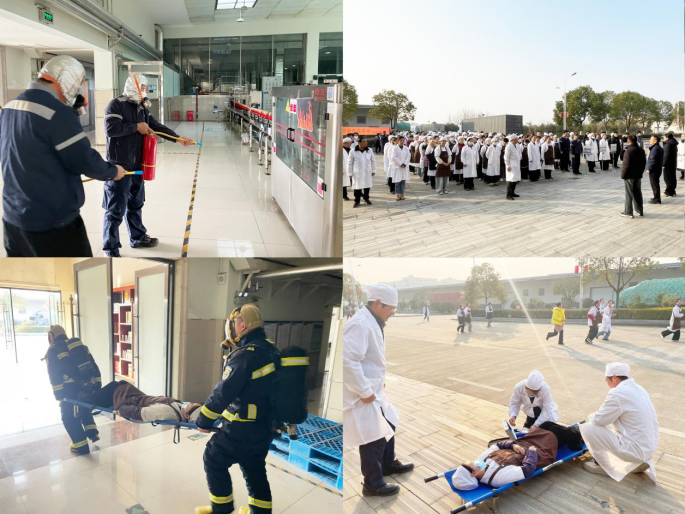 本次演练模拟烘干机内电源线短路引发初期火灾的情景,涵盖火情发现、报警响应、消防控制室联动处置、人员疏散、初期灭火、伤员救护等全流程。随着火灾声光警报器的响起,演练正式开始。防火卷帘门联动下落隔断火势蔓延,生产班长及时疏散引导班组成员快速有序撤离到指定安全区域列队集合,现场指挥立即启动应急预案,灭火组使用干粉灭火器和室内消火栓进行初期火灾扑救,救援组穿戴好消防服和正压式呼吸器进入火灾现场救出受伤人员,医疗救护组对受伤人员实施模拟救治。整个过程紧张有序、衔接顺畅,充分体现了“1分钟响应、3分钟处置、5分钟联动”的应急要求,有效检验了包装车间应急预案的可操作性和全体员工的应急素养。
