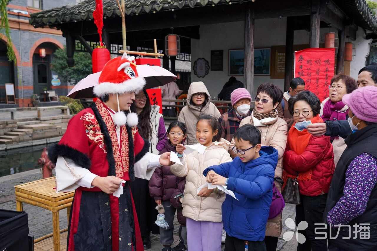以本土文化名人柳亚子为核心IP,古镇通过“亚子迎春巡游”系列活动,构建了“文化体验+消费转化”的新年消费新模式,让名人IP成为拉动文旅消费的核心引擎。“亚子先生”与民国学姐“小苏”带领游客探店、看戏、写春联、合影打卡……主题活动串联“游、食、购、住”全链条,景点联票、美食试吃、文创折扣、住宿套餐形成消费闭环,实现“单一活动”到“全域消费”的转化。