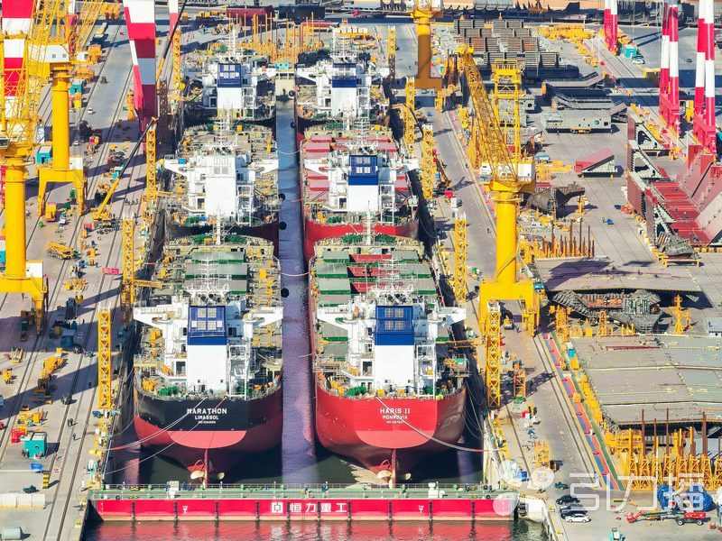 恒力重工三天内两次创造全球造船行业纪录。继1月4日,由恒力重工1号船坞建造的4艘超大型油轮(VLCC)同一天出坞下水之后,1月6日,由恒力重工3号船坞建造的6艘8.2万载重吨散货船同日出坞。此次出坞的两批船舶均为同坞建造、同日出坞,均创造了全球造船行业新纪录,标志着恒力重工节拍化、规模化造船能力已达到世界领先水平。