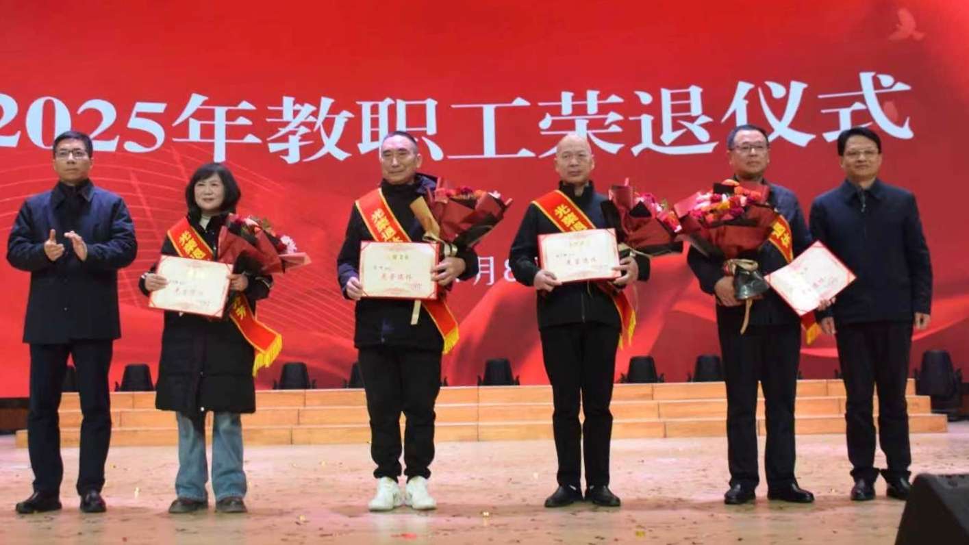 晚会尾声,学校特别举行教职工退休仪式,向为学校发展默默奉献的退休教师致以崇高敬意与诚挚祝福。