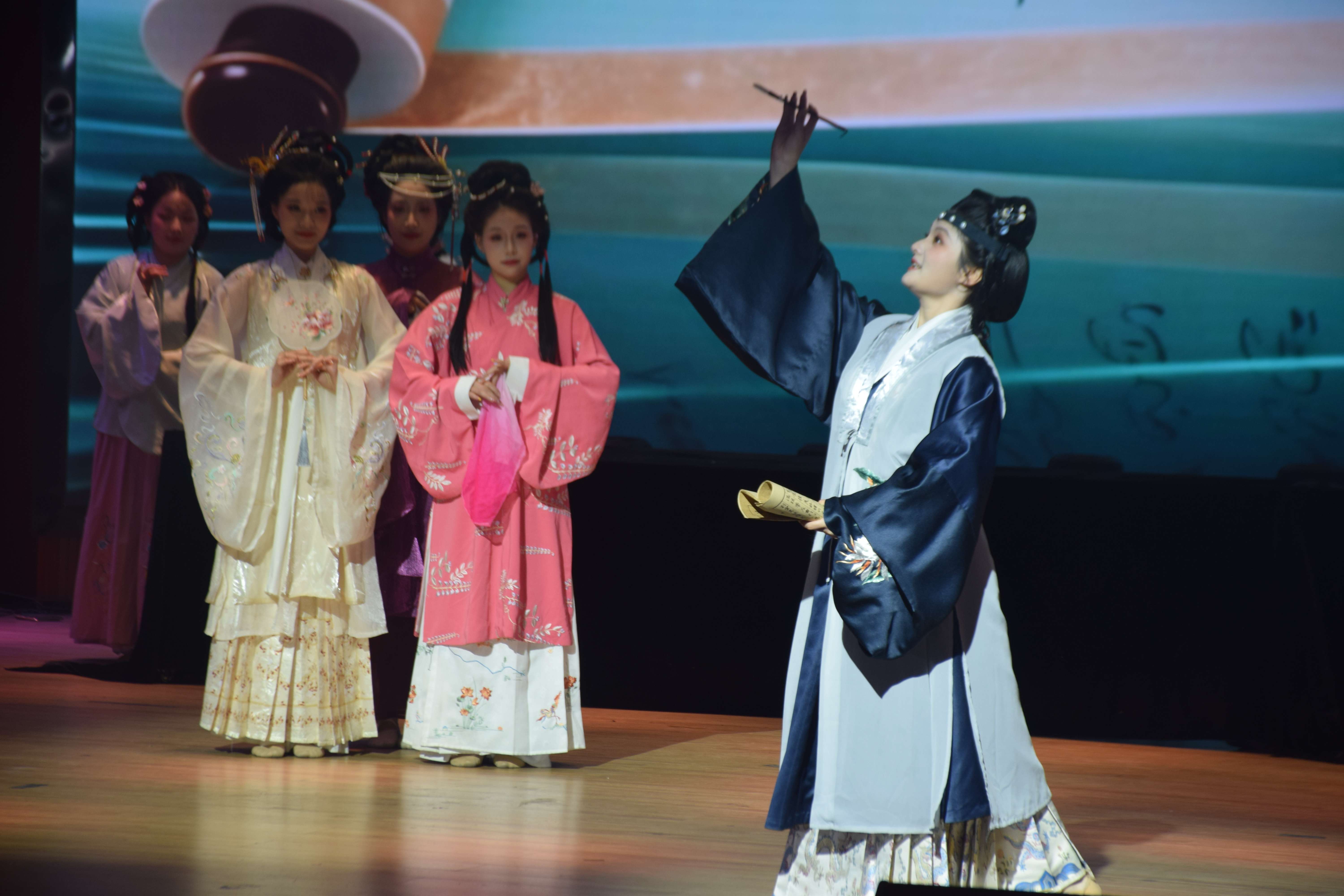 晚会以“赏艺·非遗雅集”“溯古·文明薪火”“淬融·风华正茂”三个篇章层层铺展,十余个节目轮番登场、亮点纷呈。猜灯谜环节妙趣横生,师生踊跃参与,尽显传统文化魅力;茶艺表演行云流水,茶香与雅韵交织;器乐演奏或悠扬婉转或激昂澎湃,奏响青春乐章;情景舞蹈、歌伴舞将艺术与情感深度融合,展现学子昂扬风貌;校园温情剧则以校园故事为蓝本,传递师生情谊与校园温暖……精彩的演出赢得现场掌声雷动,欢呼声此起彼伏。