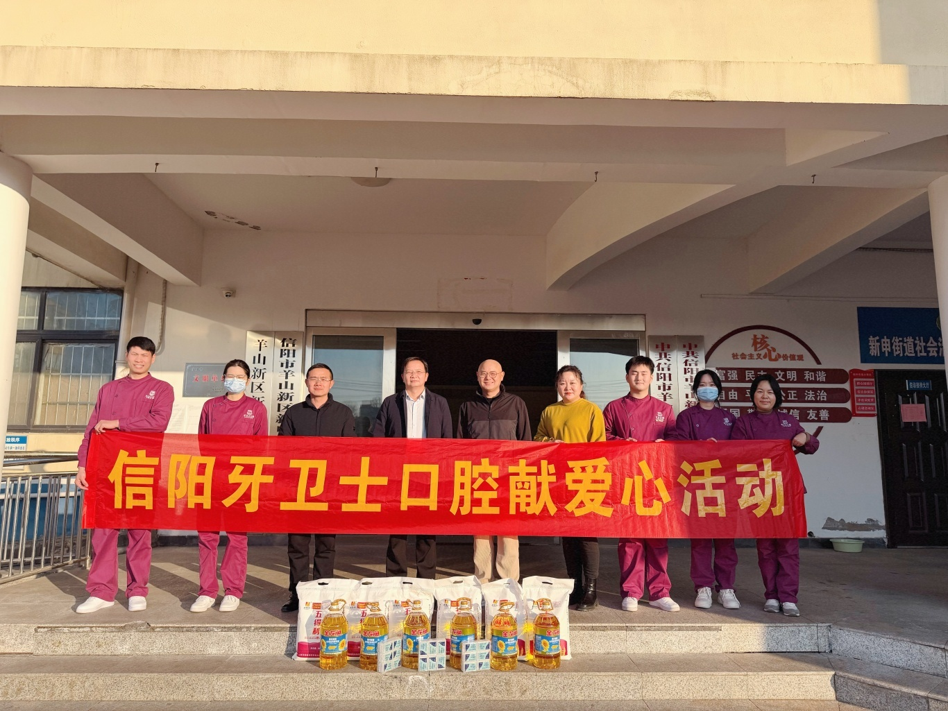 1月9日下午,信阳市爱心企业牙卫士口腔医院走进羊山新区新申街道,开展“暖冬送爱心”公益活动,向辖区困难群众捐赠面粉、食用油等生活物资,并组织专业团队宣传口腔健康知识,将温暖关怀与健康理念一同送入社区。