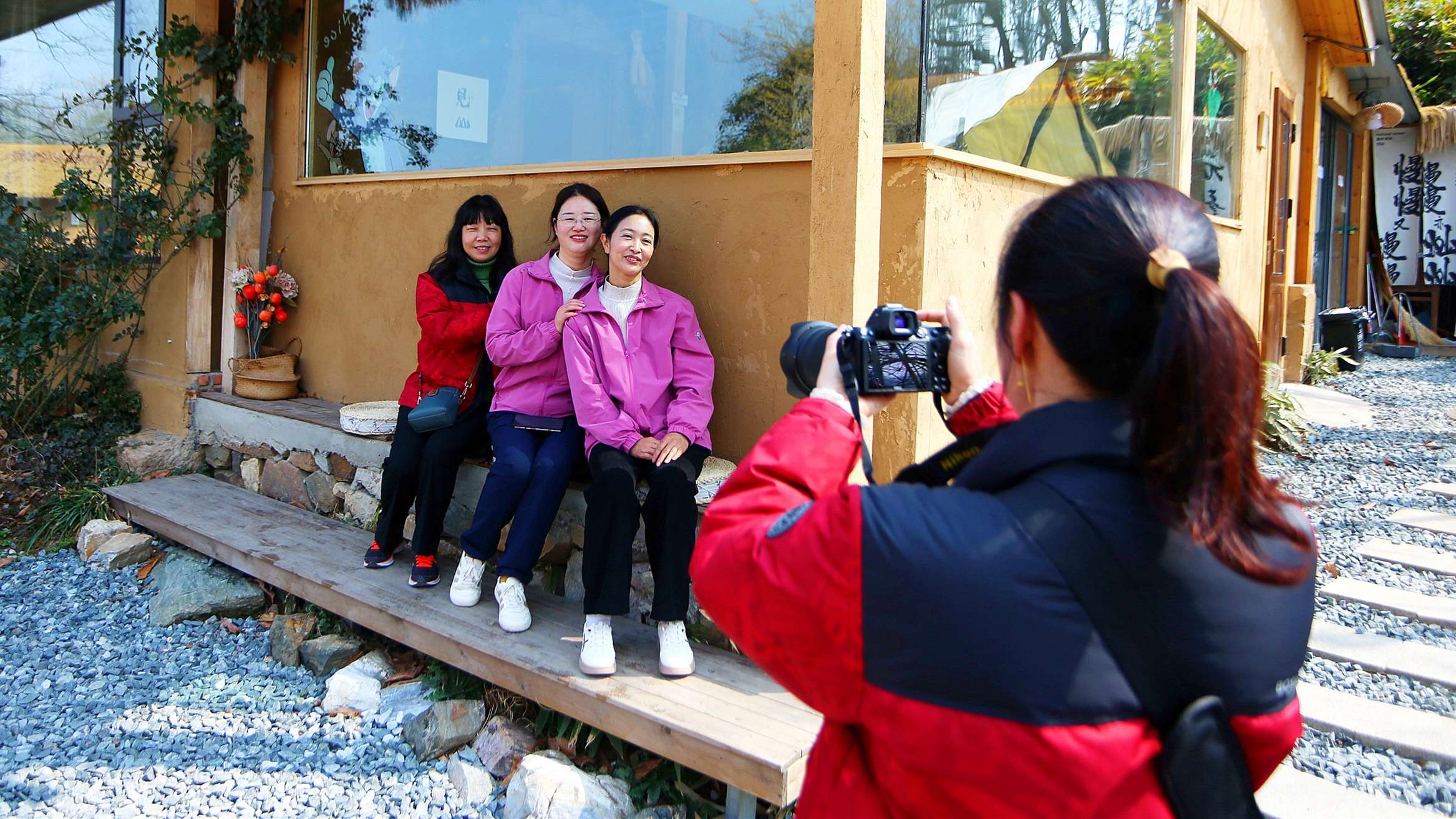 2025年3月7日,游客在“见山咖啡”小院邂逅美好。