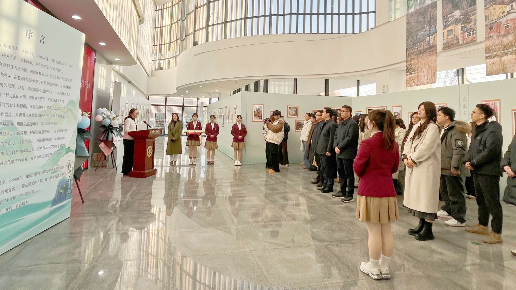 1月14日,信阳艺术职业学院“光影寻美——山水信阳满目新·古韵西河”摄影展暨教学成果展示活动温情启幕。