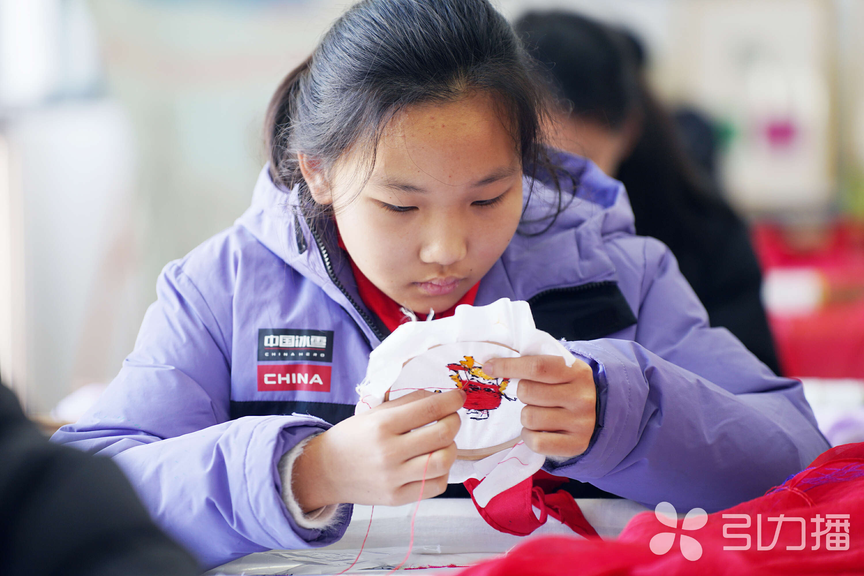 在社团教室,绣绷整齐排列,线团在桌角滚动——有的孩子绣卡通图案,色彩明快,也有人选择更传统的花鸟纹样,针脚细密。几名男同学穿针引线同样熟练,手指捏线、下针、回针一气呵成,像是在完成一项“很酷”的挑战。