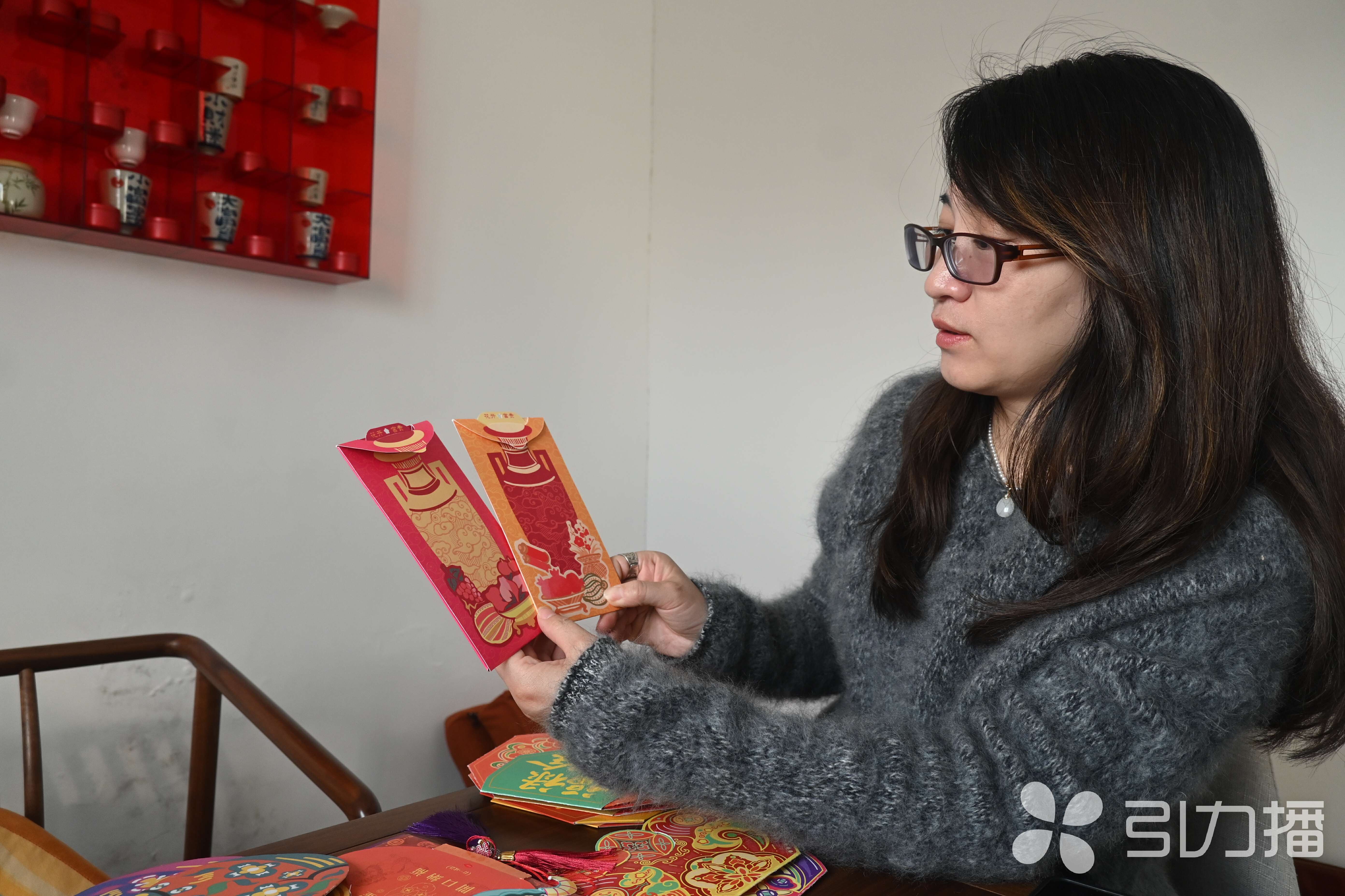 杨文丹介绍今年的红包。 实习生 阎禹霏/摄