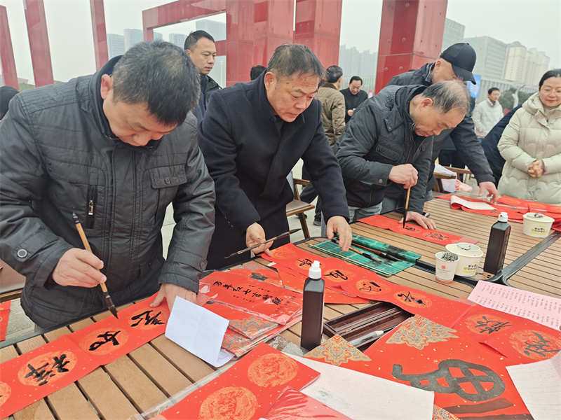 岁末寒冬至,情系百姓心。1月17日,信阳百花园内人头攒动,墨香四溢。由信阳市政协主办,市政协委员联络委承办,浉河区政协、羊山新区人大政协联络办协办的“送医送法送春联,欢欢喜喜迎新年”委员联系服务群众活动在此举行。来自医卫、法律、文化艺术界的政协委员与专业骨干们亮明委员身份,将健康守护、法治护航与新春祝福打包送到百姓身边,让群众感受到浓浓暖意。