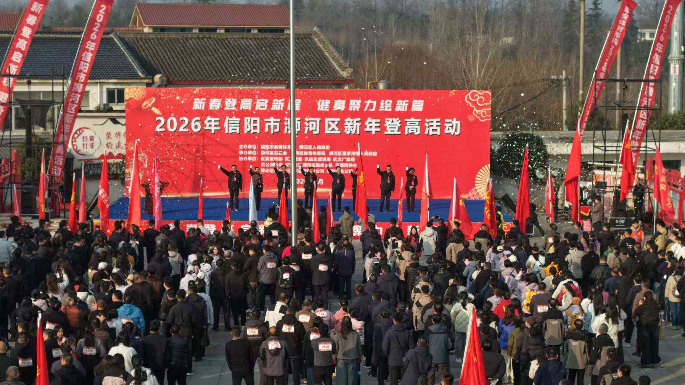 为积极响应河南省新年登高活动号召,全面落实全民健身国家战略,大力发展户外运动,倡导健康向上的生活方式,丰富群众文体生活,1月16日上午,以“新春登高启新程 健身聚力绘新篇”为主题的2026年浉河区新年登高活动,在董家河镇楼畈村拉开帷幕。本次活动共吸引1500余人参与。