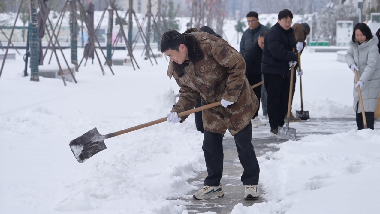 除雪一线不仅有专业队伍,更有广大干部群众的主动参与。社区工作者、物业人员、机关干部、热心居民纷纷拿起工具,清扫小区、街巷积雪,为邻里开辟出一条条“安心路”“暖心道”。