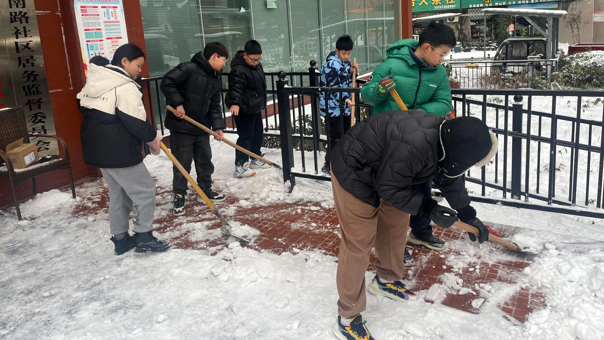 近日,我市遭遇强降温、雨雪及寒潮天气,昨夜气温骤降至-7℃。积雪经车辆反复碾压与低温固化,在路面形成近4厘米厚的坚硬冰层。1月22日上午9时,在浉河区五星街道河南路社区浉河一号小区外的非机动车道上,除社区工作人员奋力铲冰外,一群稚嫩的身影格外引人注目。王小亮和几名小伙伴自发组成“少年突击队”,用雪铲清理碎冰。