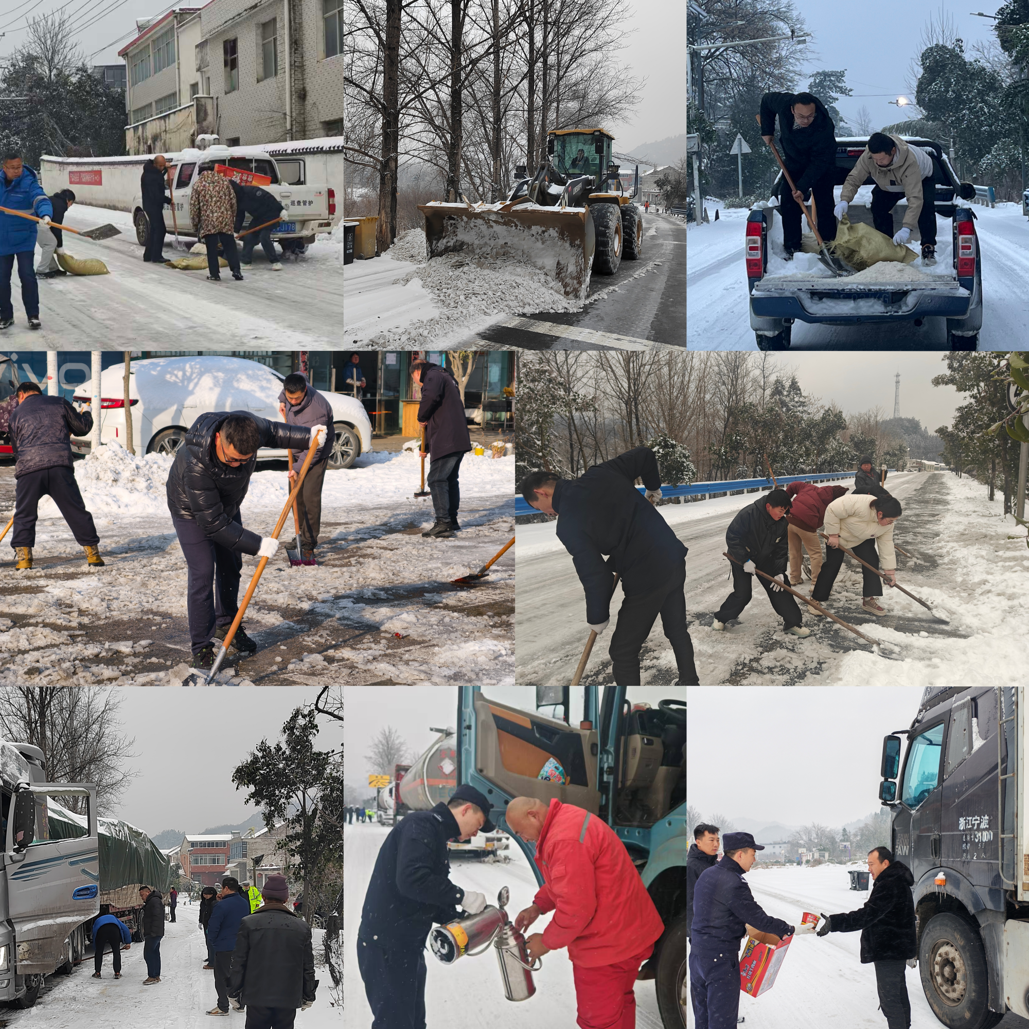 迎雪而上,合力清障。面对道路积雪,镇党委主要负责同志靠前指挥,镇、村干部全员上阵,迅速奔赴各主干道清扫积雪,并协调调动6台铲车等机械设备,通过“机械+人工”模式高效破冰除雪。党员干部带头行动,带动周边50余名群众主动加入清雪队伍,更有热心群众主动为清雪队伍及过往司机送上热水、泡面,凝聚起党群同心战风雪的强大合力。