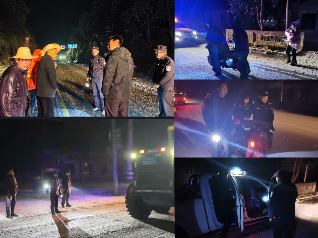 风雪守护,暖心同行。针对夜间道路结冰易滑的情况,镇派出所、镇交警队、镇执法队整合力量,组成3支巡逻队伍,重点围绕G106、S338等国省干道开展多轮次夜间巡查,全力保障夜间通行安全。在杨畈路口巡逻时,巡逻队发现一名群众因电动车低温断电无法前行,在妥善安置电动车后,将其护送至商城县余集镇家中。这个“雪中送炭”的暖心场景,正是沙窝镇党员干部践行初心、服务群众的生动写照。