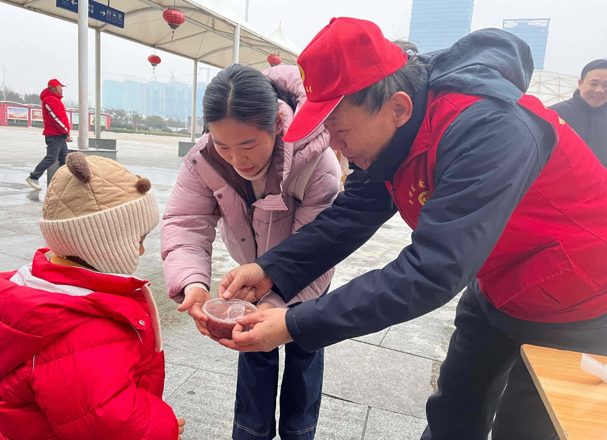 “来,喝碗热粥暖暖身!”1月26日上午8时许,信阳东站广场的寒风中,身穿红色马甲的志愿者们格外醒目。信阳市公益志愿者协会的志愿者们手捧盛满腊八粥的纸杯,向奔波的旅客递去冬日暖意,热气氤氲间,道谢声与粥香交织,绘就申城腊八最动人的图景。
