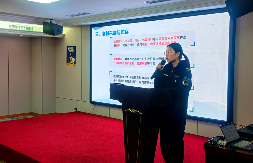 市市场监督管理局羊山分局餐饮股工作人员结合外卖行业经营特点,围绕食品原料采购查验、储存加工、餐饮具清洗消毒、从业人员健康管理等关键环节,细致解读了商家的法定义务与责任边界,通过典型案例剖析,全面引导商户自觉守法经营、规范操作。