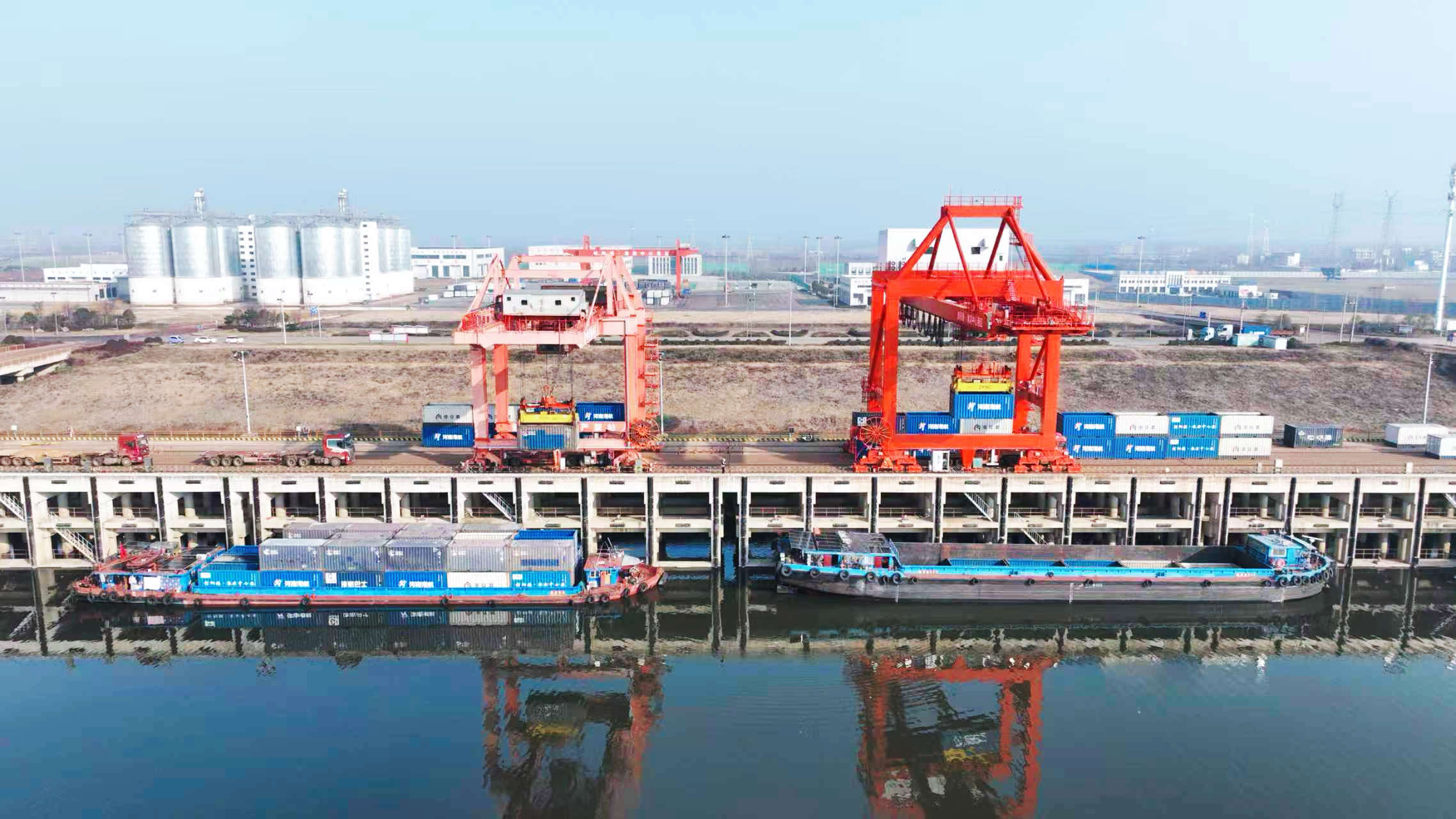 虽是隆冬时节,淮滨中心港作业现场热潮涌动,新能源货车往来不息,集装箱有序流转,一派繁忙有序的景象。“我们紧抓生产攻坚窗口期,通过科学调度、资源优化与现场无缝衔接,成功打造了集装箱船舶‘到港即作业、装卸不过日’的高效运营模式,船舶实载率、大型船舶靠港率均稳步攀升。”信阳市淮河港口集团有限公司副总经理黄明明介绍道。