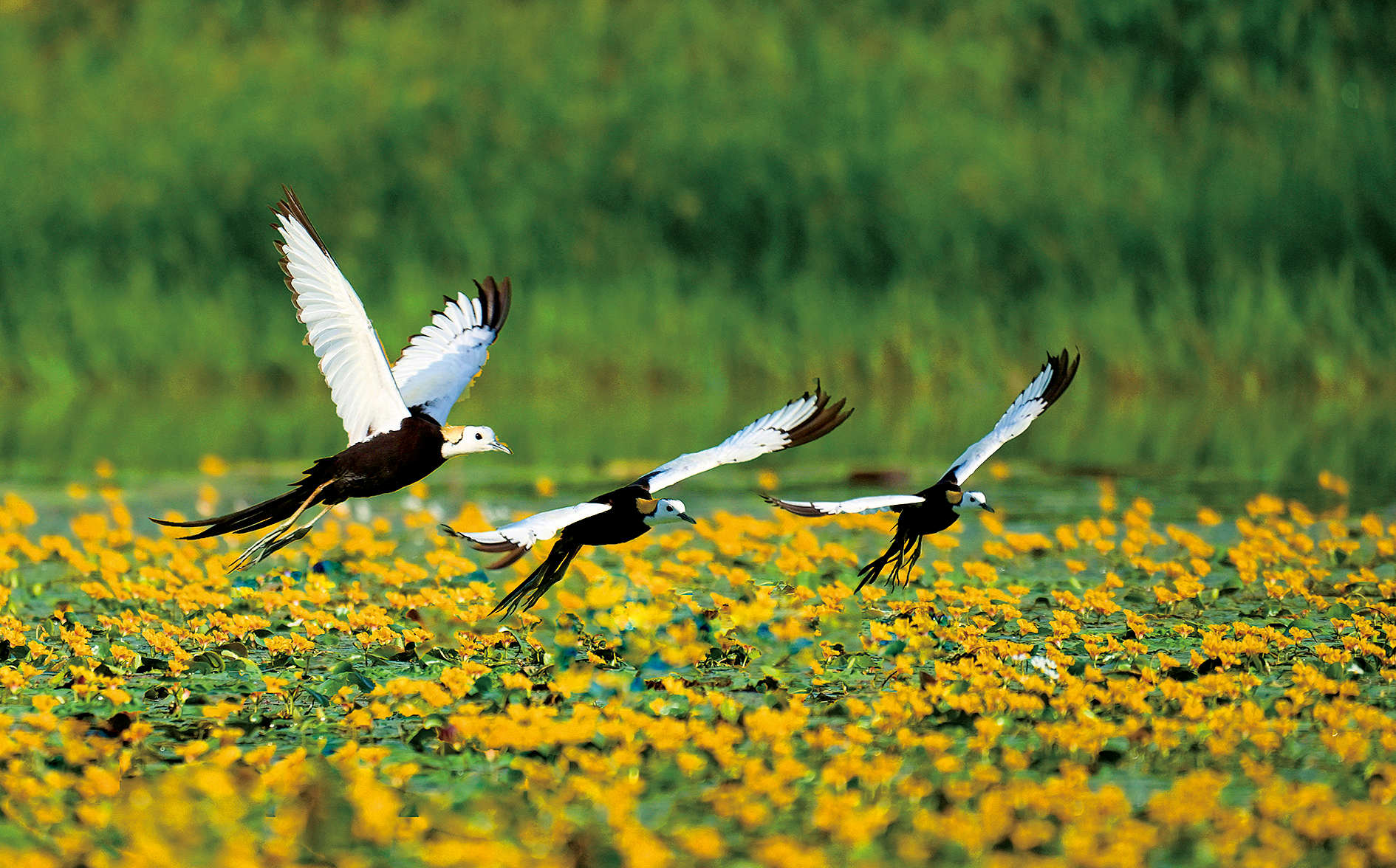据了解,目前我市已建成湿地类自然保护区2处,国家级湿地公园4处,省级湿地公园6处(其中4处为试点建设),其中省级重要湿地3处。各湿地类自然保护地每年监测的各类水鸟90余种,近10万只,其中东方白鹳、中华秋沙鸭、白枕鹤、青头潜鸭、水雉等国家重点保护物种已在信阳“定居”,且种群数量较大,各湿地还监测到白尾海雕、黑鹳等珍稀物种。