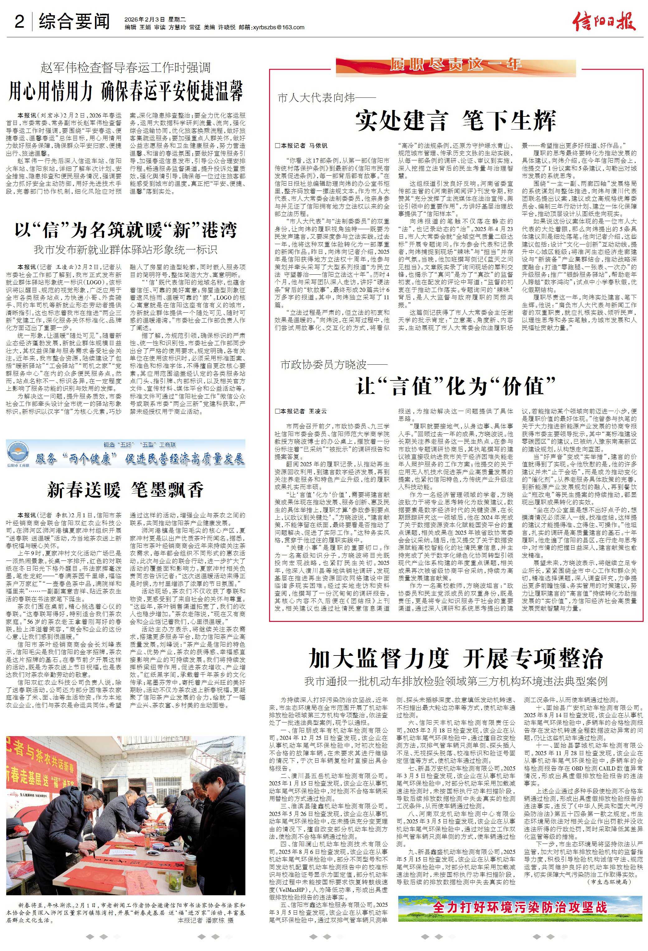 “市人大代表”与“法制委委员”的双重身份,让向炜的履职视角独特——既要为民发声建言,又要深度参与立法实践。过去一年,他将这种双重体验转化为一部厚重的新闻作品。昨日,向炜向记者介绍,2025年是信阳获得地方立法权十周年,他参与策划并牵头采写了大型系列报道“为民立法 守望善治——信阳立法这十年”。历时4个月,他与采写团队深入走访,讲好“硬法条”背后的“软故事”,最终形成20篇共计6万多字的报道。其中,向炜独立采写了11篇。