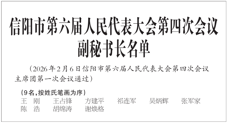 信阳市第六届人民代表大会第四次会议副秘书长名单