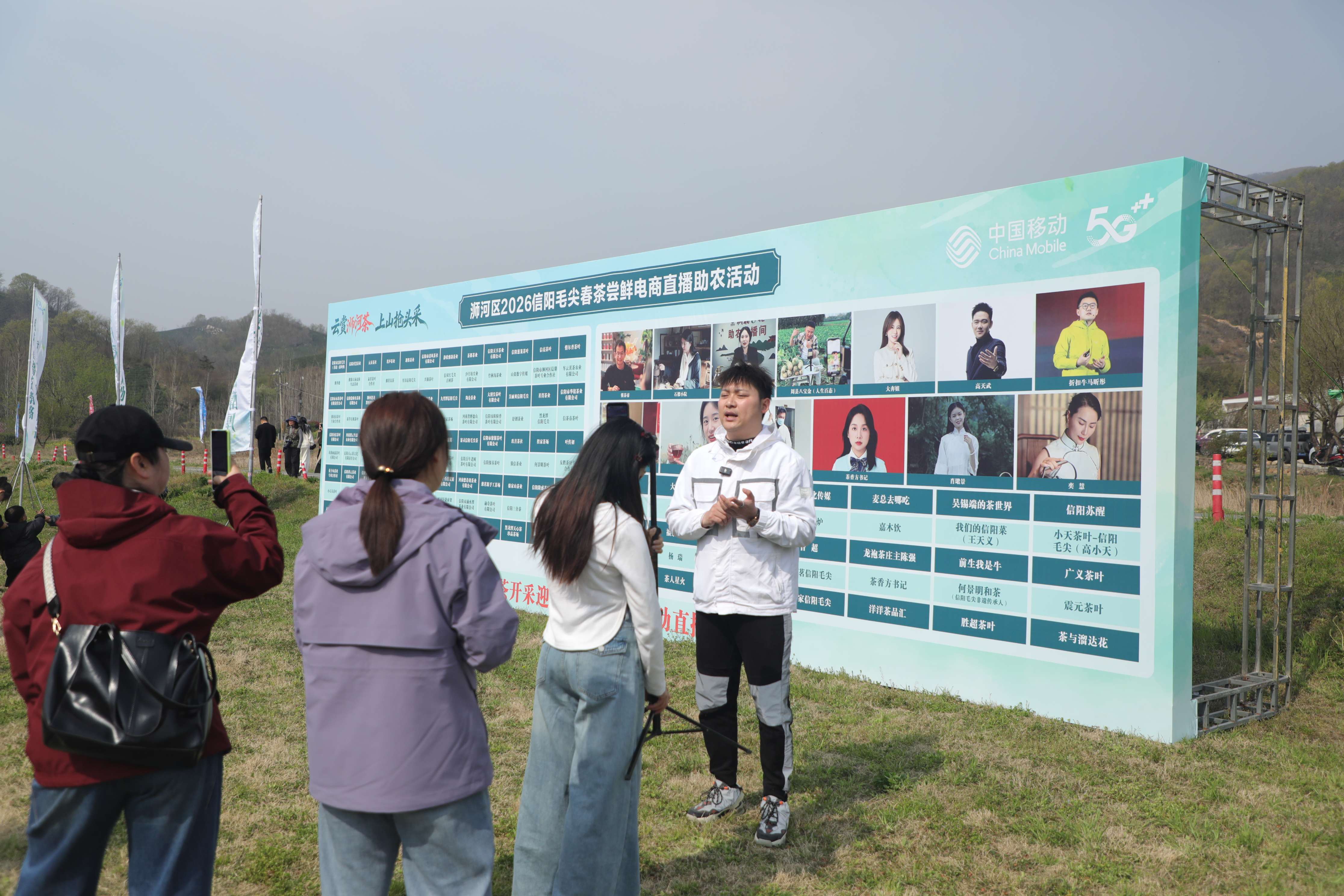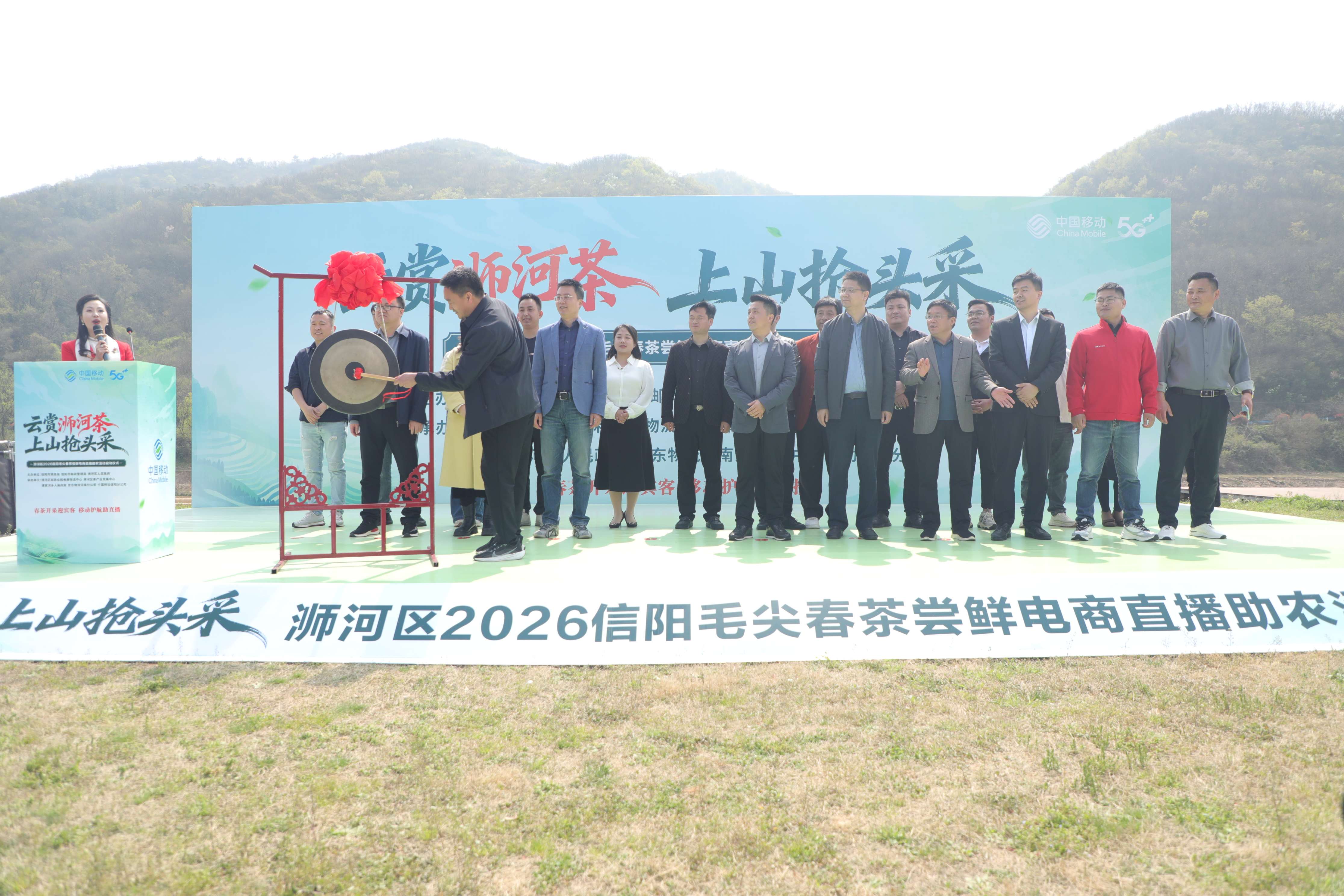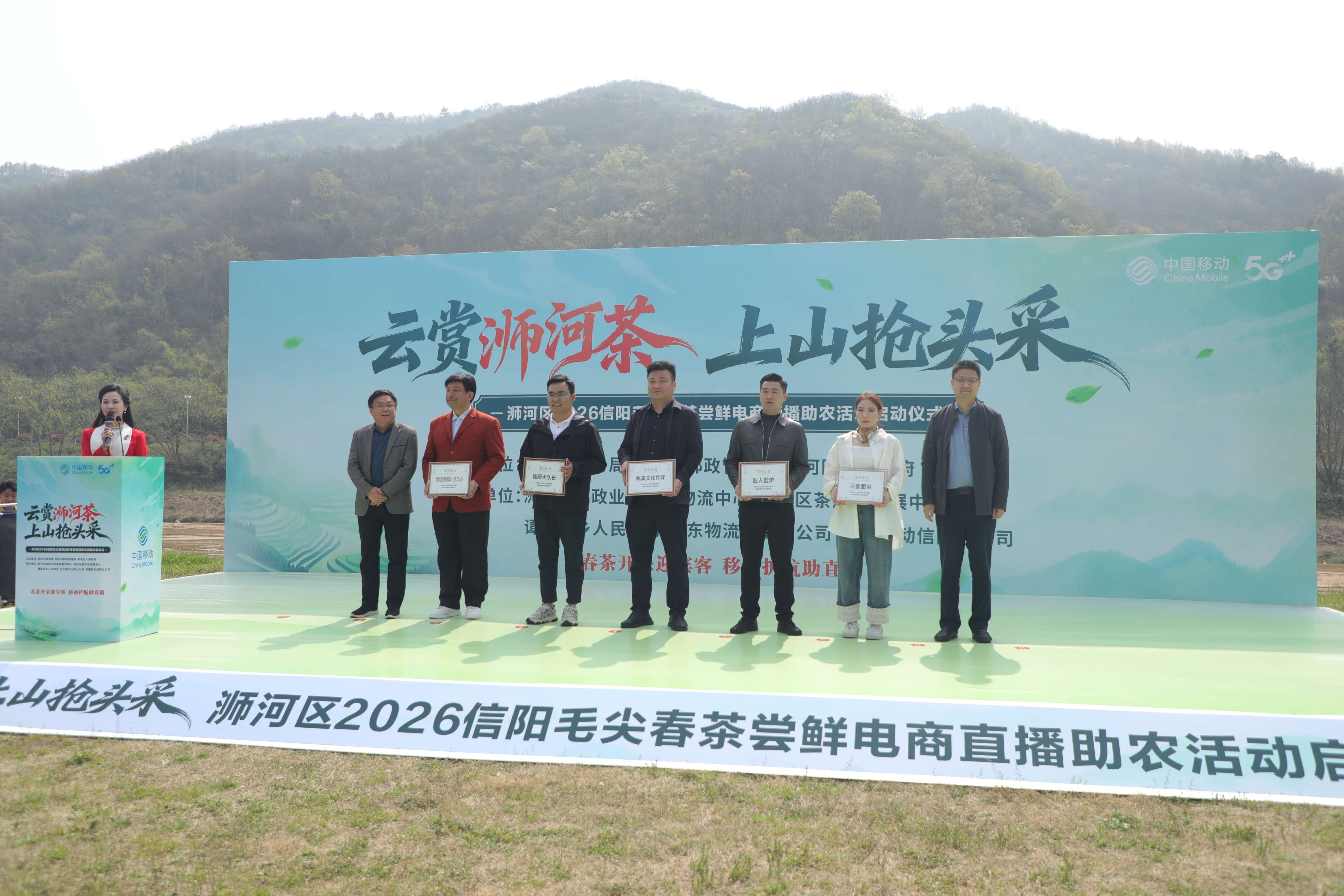 3月28日,“云赏浉河茶 上山抢头采”浉河区2026年信阳毛尖春茶尝鲜电商直播助农活动启动仪式在谭家河乡土门村举行。