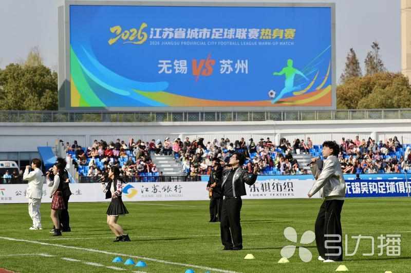 3月28日下午,江苏省城市足球联赛一场热身赛在宜兴体育中心体育场举行。赛前,一场融合青春歌舞与机器人“战警”的开场演出精彩上演,机器人随音乐起舞,科技感十足,瞬间点燃全场氛围。看台上,无锡队与苏州队球迷热情高涨,加油助威声此起彼伏,共同为这场“江苏德比”注入澎湃活力。(苏报融媒记者 张健/摄)