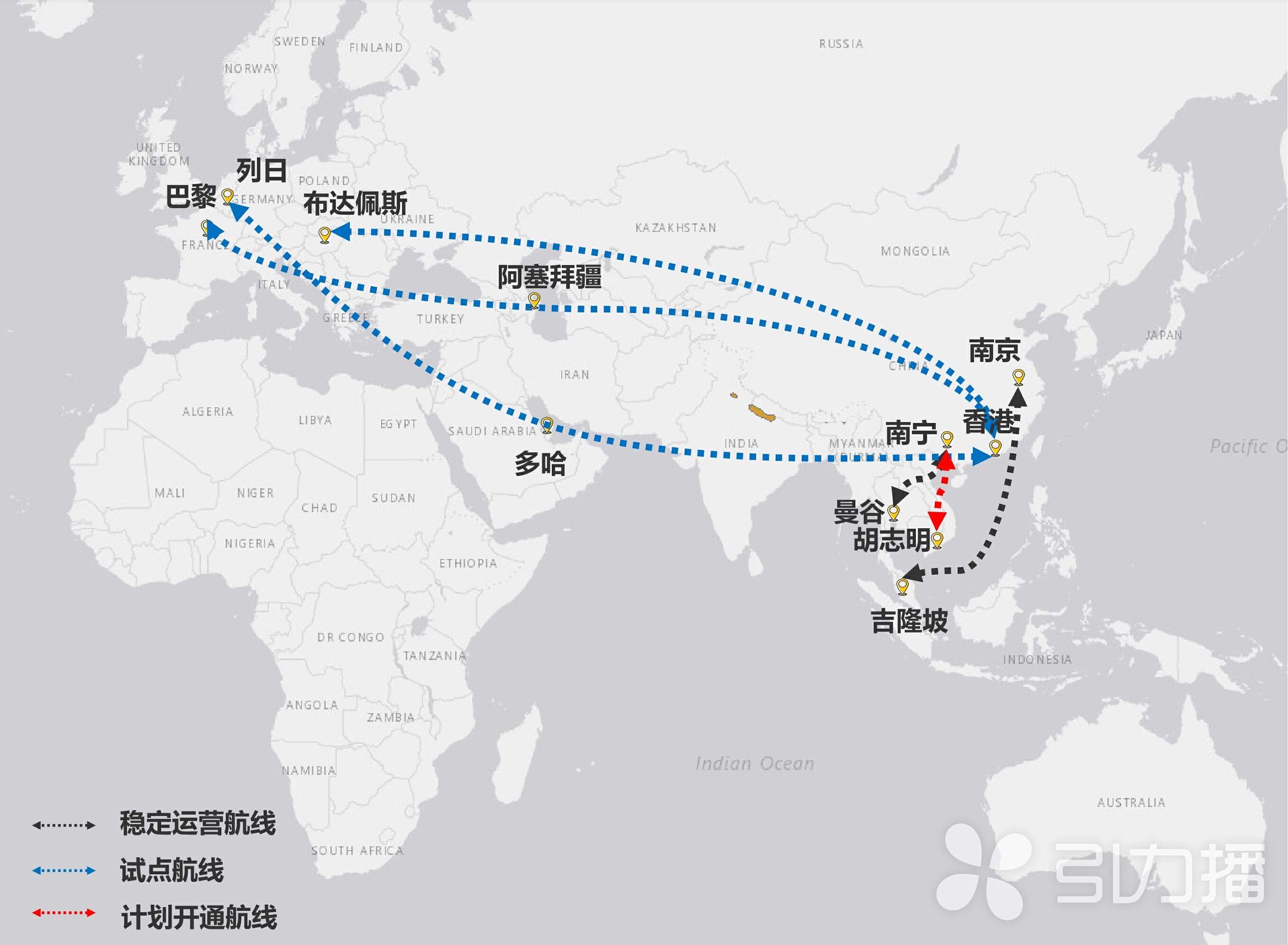 苏州港航集团包机业务航线图。苏州港航集团供图