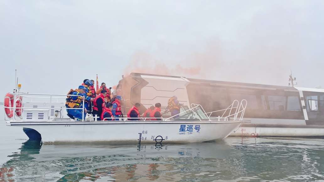 本次演练以“协同处置、安全护航”为主题,模拟了游船火灾、游客落水、船只机械故障三类典型突发事件处置。在“游船电气火灾”模拟情景中,救援队驾驶冲锋舟迅速抵近起火船只,配合船员开展灭火与游客转移,同步对“伤员”实施急救。在“游客落水救援”模拟环节,队员熟练运用抛绳、救生圈与舟艇驾驶技术,在较急水流中快速定位并救起落水者。面对“游船机械故障失去动力”的模拟险情,救援队与游船方协同启动备用船只,高效完成游客安全转移与故障船只拖带。
