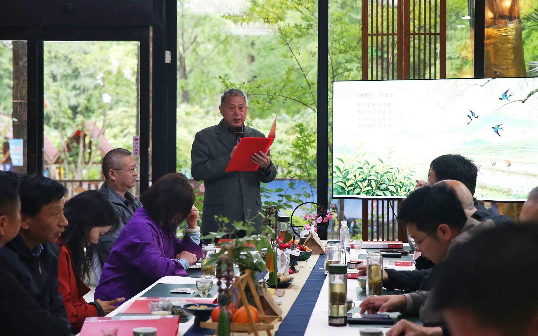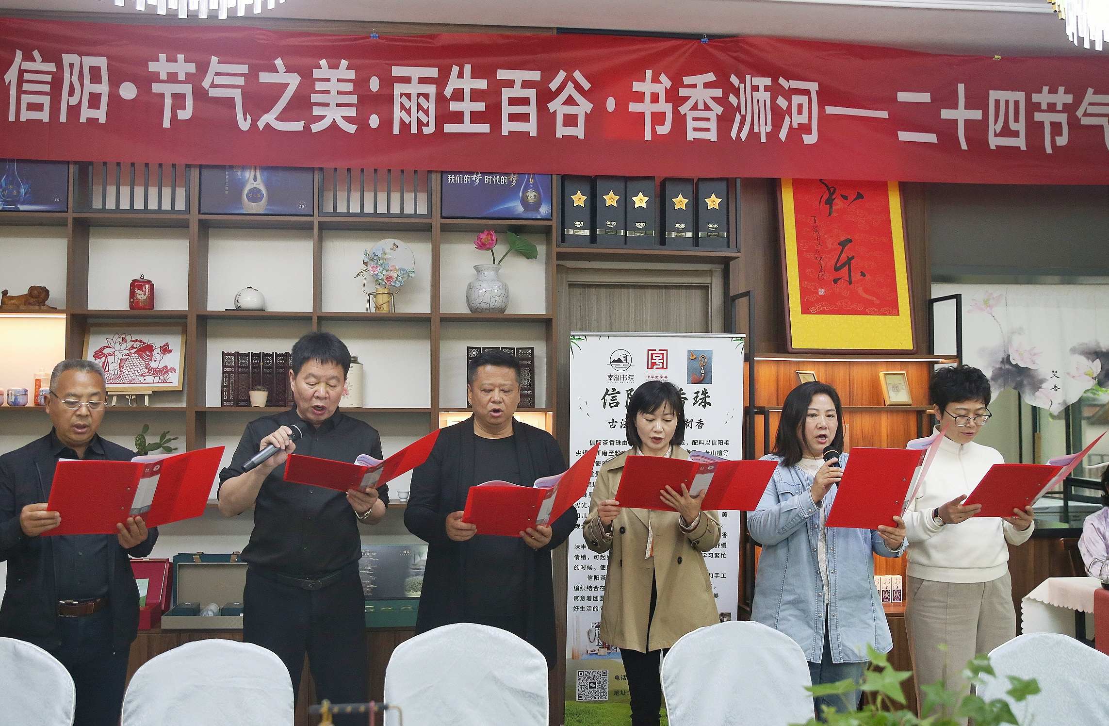 随后的“谷雨诗词会”环节,将现场气氛推向高潮。参与者们依次诵读了《谷雨》《尝茶》等与节气、春景相关的古典诗词。活动现场还特别呈现了原创诗作《谷雨:把美好的消息寄给远方》,并集体诵读了《道德经》等经典篇章,琅琅书声与春日庭院相映成趣,展现了“书香浉河”的浓厚底蕴。