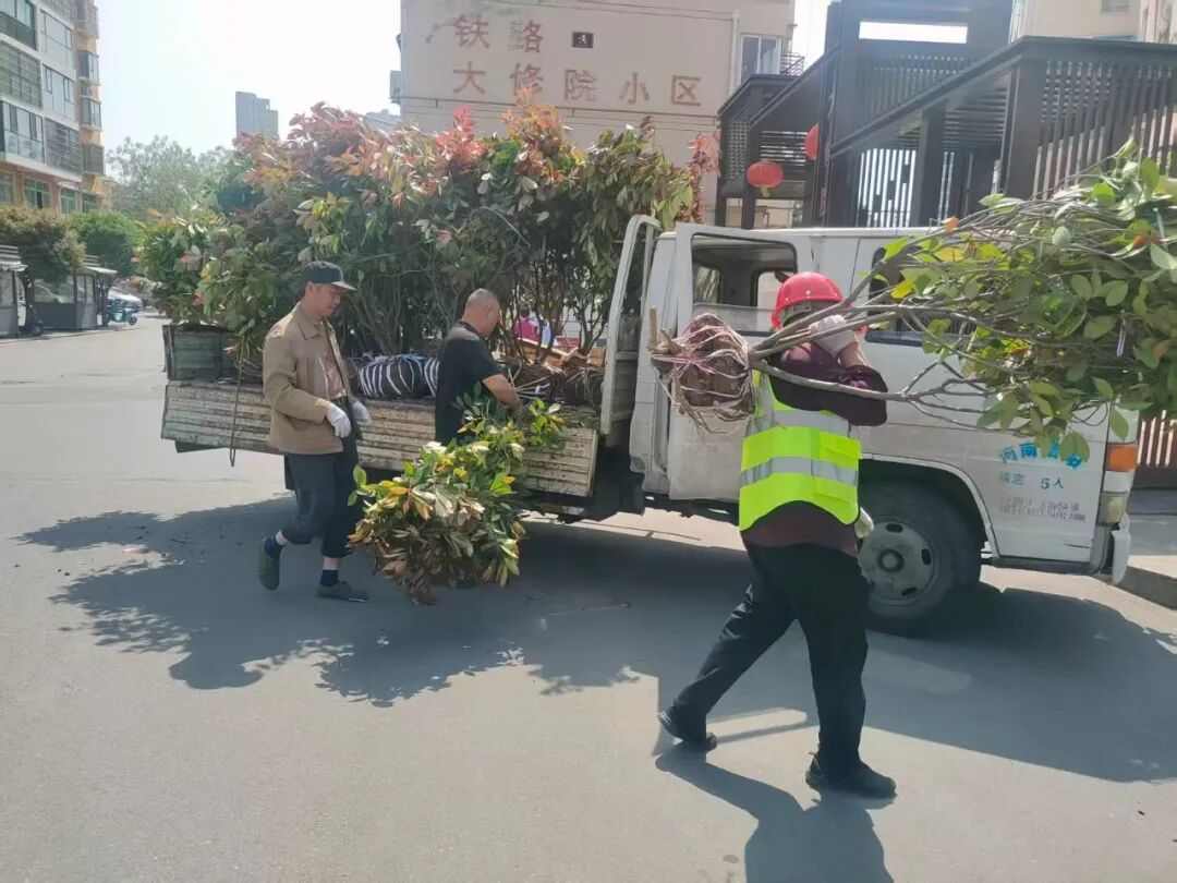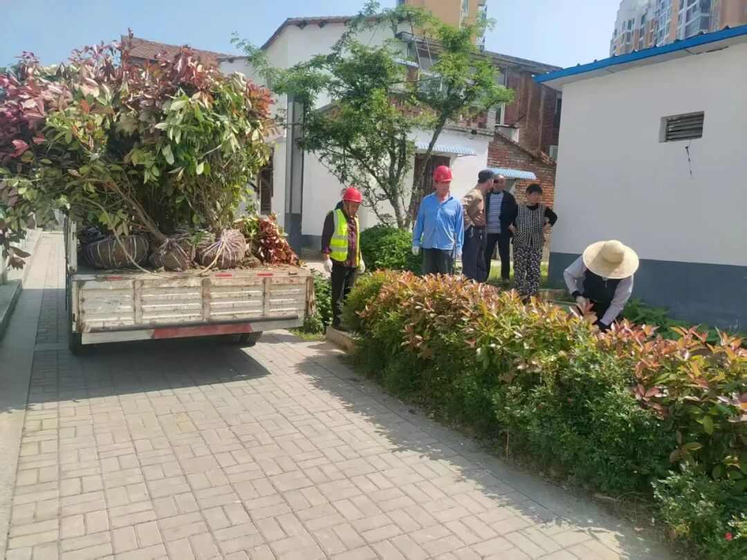 前期准备工作就绪后,市园林中心派出8名经验丰富的专业技术骨干深入北道口社区开展集中绿化补植作业。作业人员分工明确、配合默契,按照园林绿化施工规范,高标准完成挥锹铲土、扶苗正根、填土压实、围堰浇水、播撒草籽等一系列流程工序。针对黄土裸露、苗木稀疏的重点区域,精准补植红叶石楠球等适应性好、观赏性佳的苗木30余棵,连片补播草籽数百平方米。经过一整天的精细化施工,消除了社区绿化“斑秃”“空白”问题,修复了公共绿地生态景观,原本杂乱的社区绿地重焕生机,赢得社区居民一致认可。