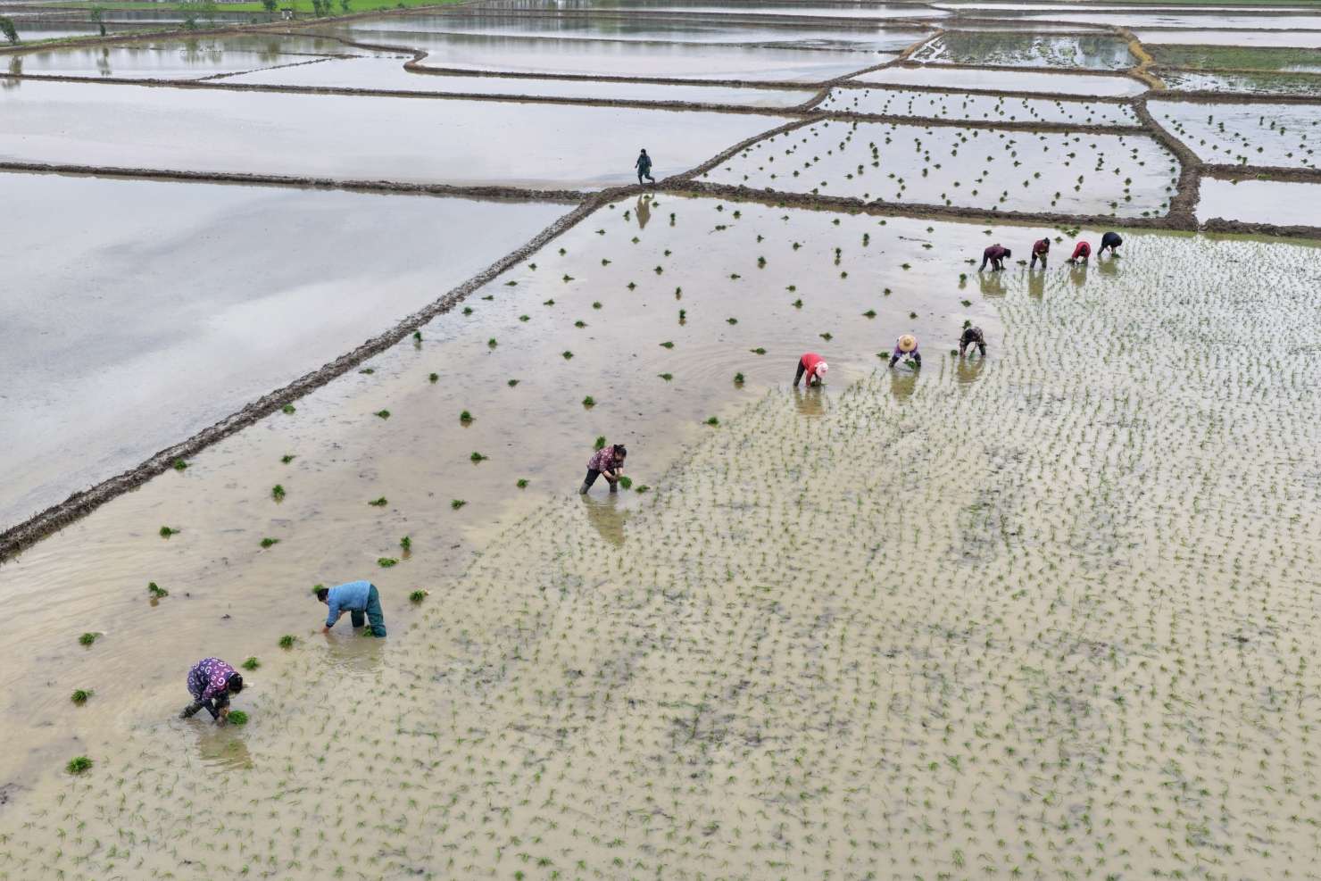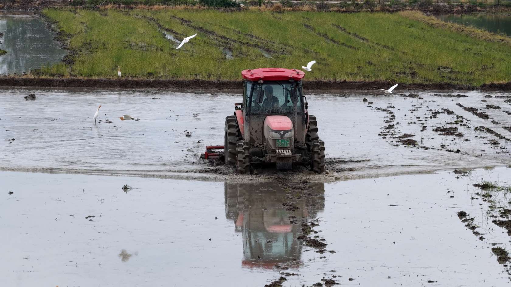 4月23日,在砖桥镇李岗村昌盛农业专业合作社,600亩再生稻稻田开始插秧,新插下翠绿的秧苗满载着新一年丰收的希望。