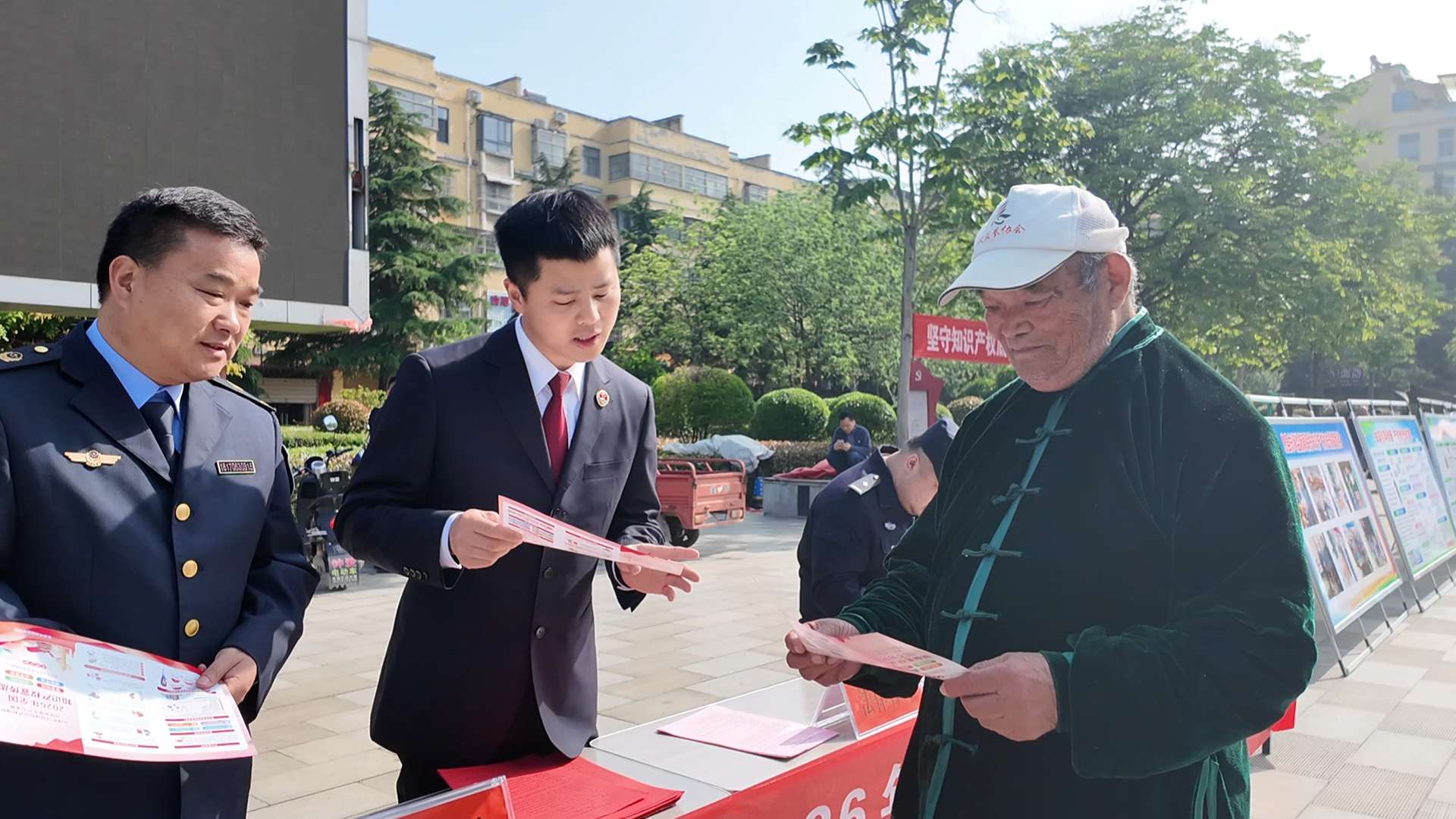 活动现场气氛热烈,工作人员通过悬挂宣传横幅、设置主题展板、发放知识手册及小礼品等方式,向群众普及商标、专利、地理标志、版权等法律法规,并提供政策解读、法律咨询和维权指引服务。