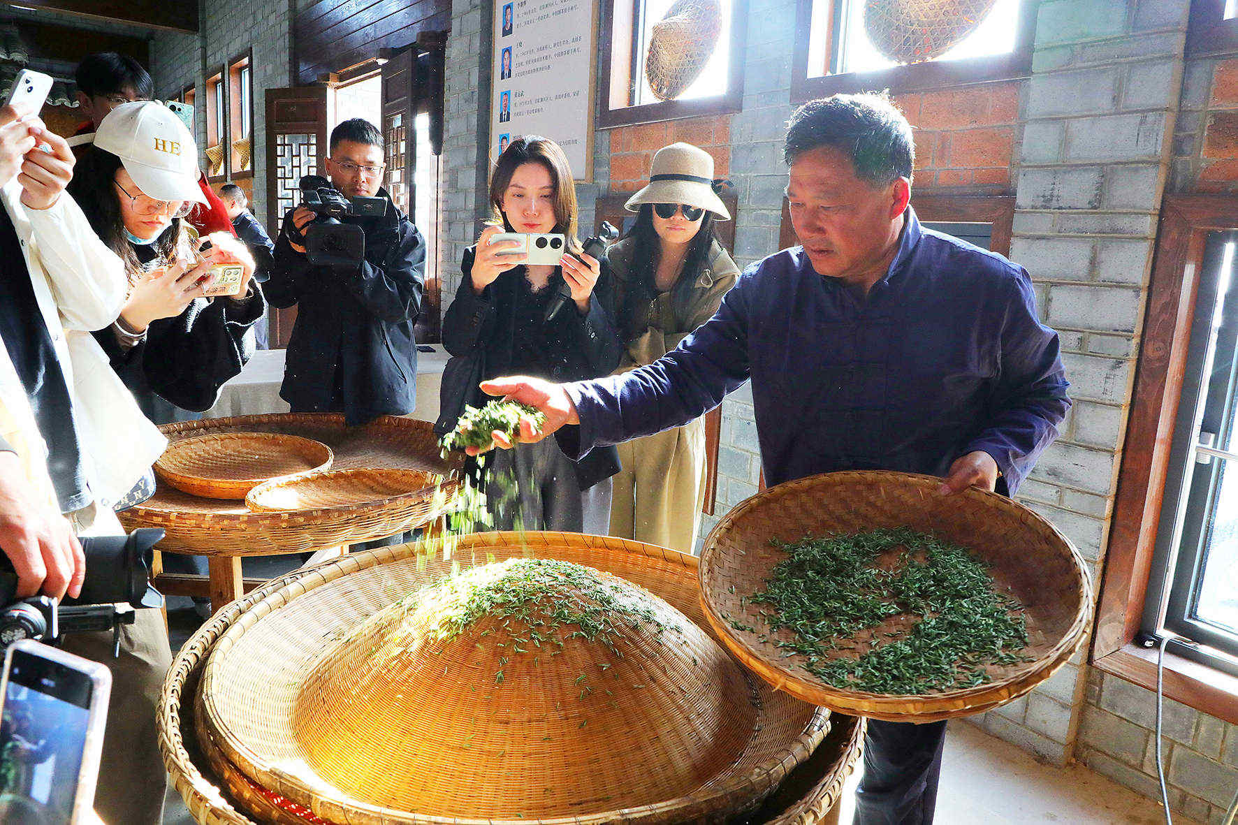非遗文化的活化传承,为茶旅融合增添了独特魅力。“我们就是要通过现场展示、亲手体验,让更多人了解信阳毛尖的制作技艺,传承好这份文化遗产。”国家级非遗传承人周祖宏从事信阳毛尖制作已有50余年,如今他经常为游客展示古法制茶技艺,手把手教游客揉茶、炒茶。“以前觉得非遗离我们很远,今天亲手体验了炒茶,才知道每一杯信阳毛尖茶都来之不易,也感受到了传统技艺的魅力。”来自郑州的游客王晶晶在体验完制茶后感慨道。