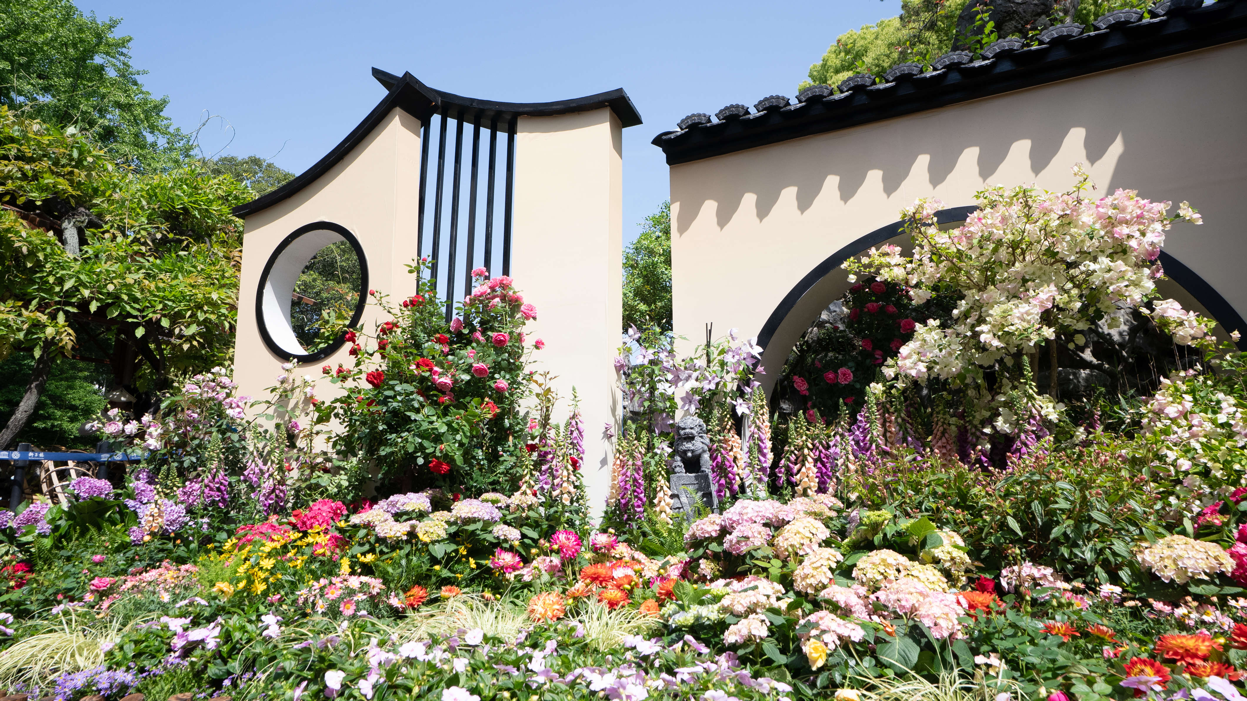 园林本就是“咫尺之内再造乾坤”的典范,此番再添花事,更是处处可驻足、步步可入画。狮子林依托园内山水格局、亭台廊榭与湖石假山,将花卉布置与园林景观有机融合。在祠堂庭院、紫藤架、九曲桥等核心区域,被木绣球、月季等花卉重新“装扮”了一番,辅以艺术花墙与主题装置,形成色彩层次丰富的景观带,成了不少人拍照打卡的首选。