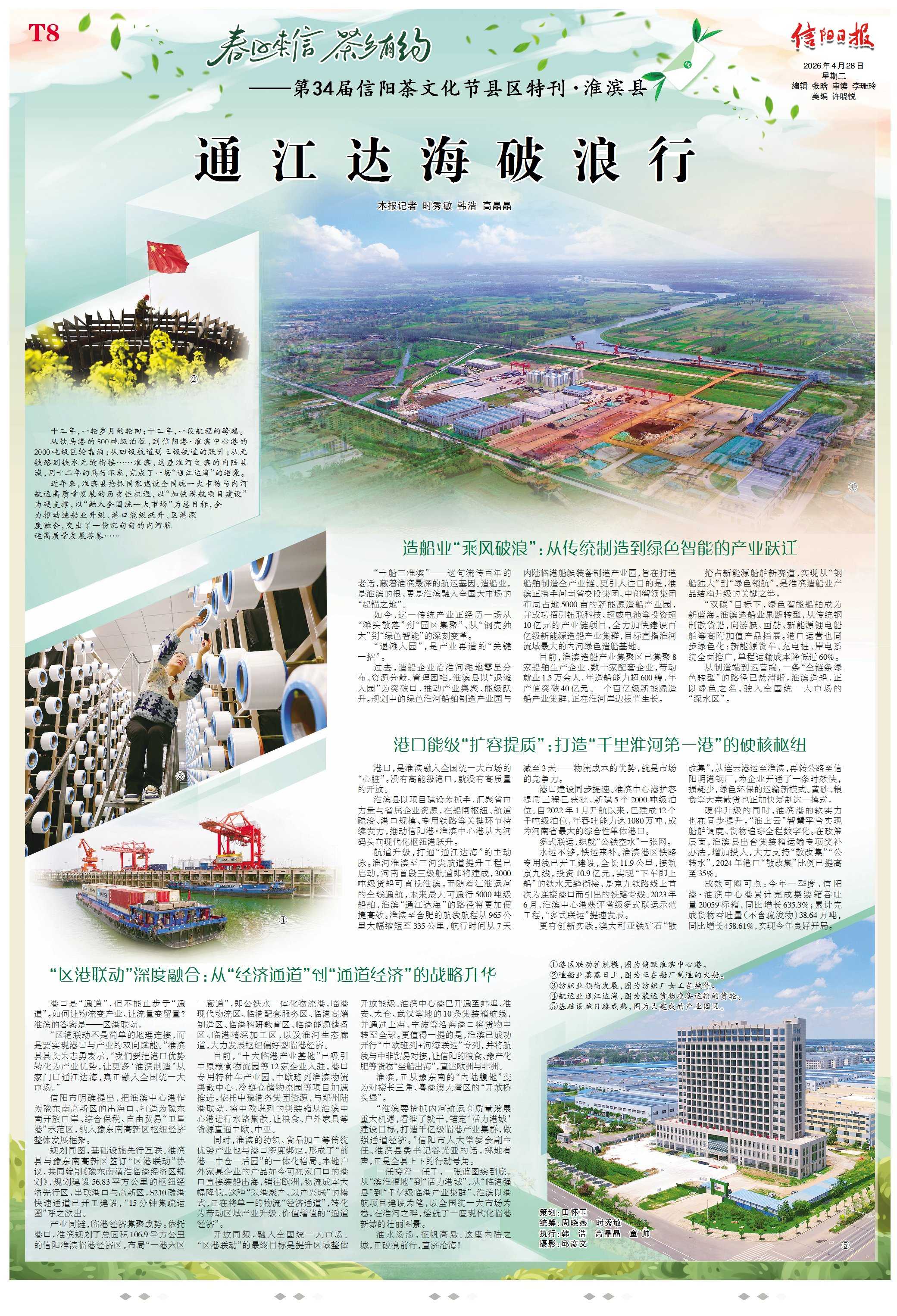 “淮滨要抢抓内河航运高质量发展重大机遇,看准了就干,锚定‘活力港城’建设目标,打造千亿级临港产业集群,做强通道经济。”信阳市人大常委会副主任、淮滨县委书记谷光亚的话,掷地有声,正是全县上下的行动号角。