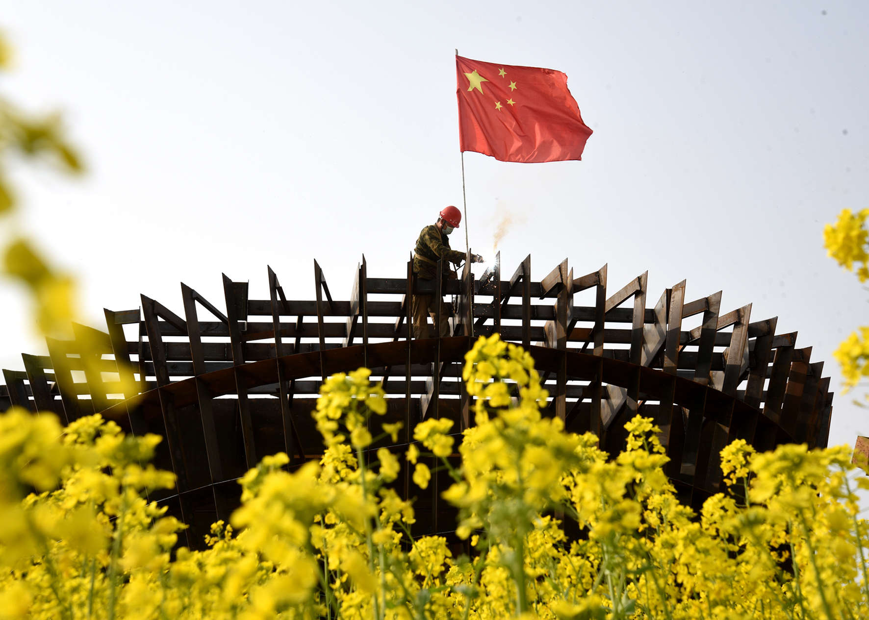 造船业蒸蒸日上,图为正在船厂制造的大船。