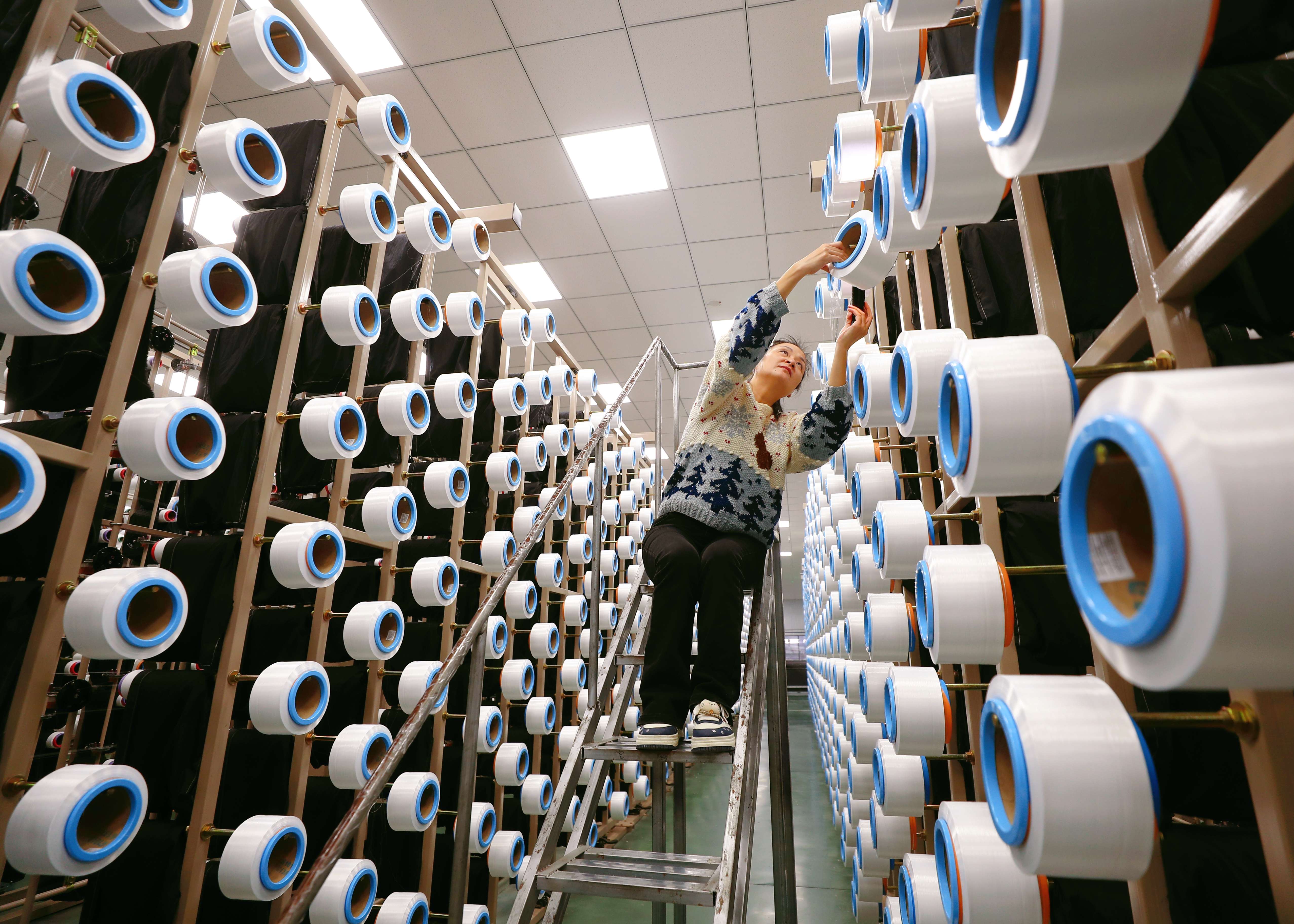 纺织业领衔发展,图为纺织厂女工在操作。