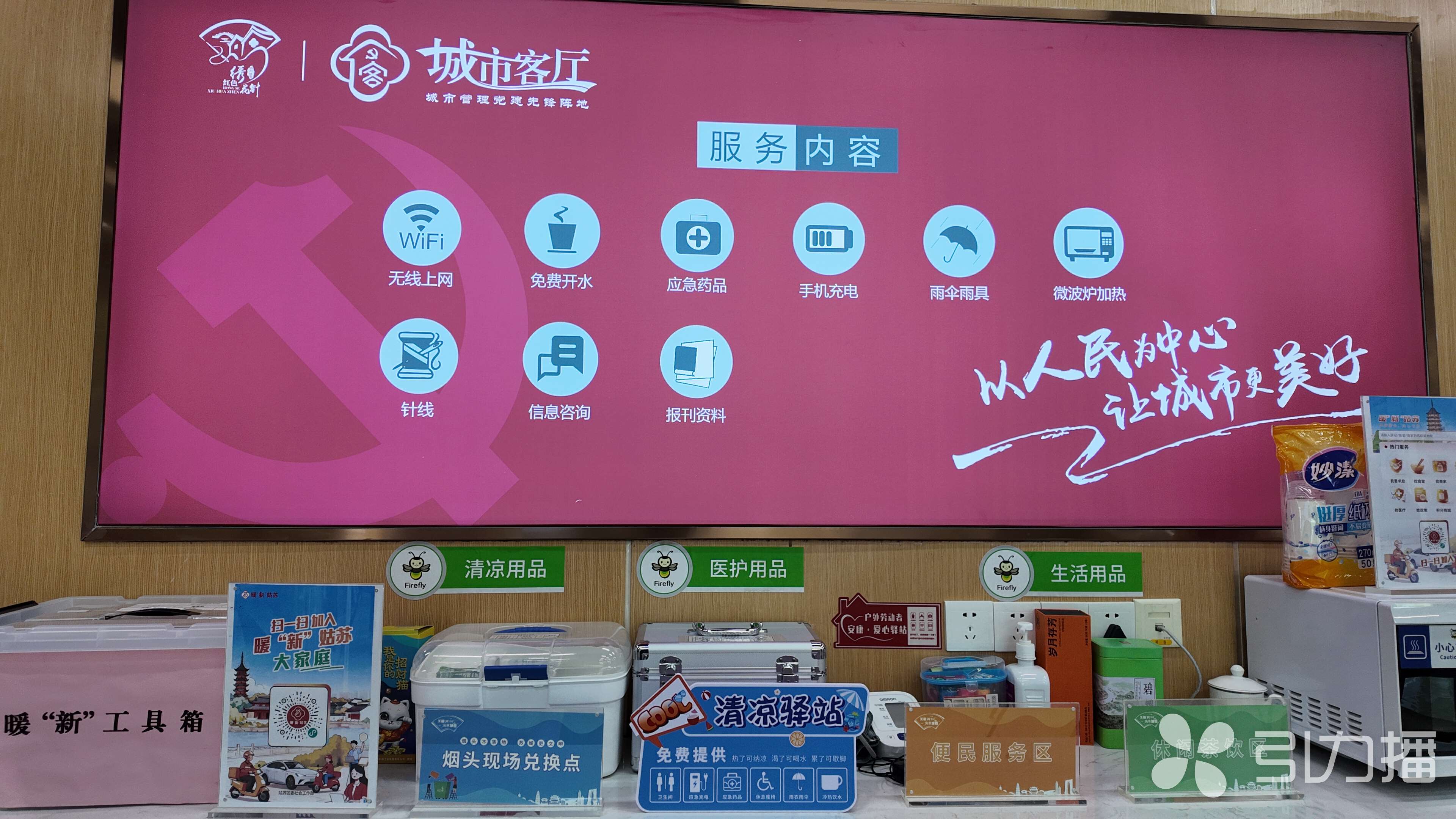城市管理党建先锋阵地原本是市城市照明服务中心的办公场地,2020年升级为党建先锋阵地。“刚开始,群众进来只是问路、借厕所,办完事就走。”市市政管理中心党总支委员平耀祖坦言,“硬件有了,但心墙还在。”对此,中心党总支以“大门常开、场所常用、活动常办、服务常抓、群众常来”为目标,从群众需求出发优化功能布局:门口增设休息长凳、灭烟柱,方便户外工作者临时休憩;内部配齐空调、医药箱、充电宝、AED除颤器等便民设施,覆盖休息避暑、应急救护、日常便民等多元需求。“以前跑外卖,最难的就是找地方上厕所和给手机充电。现在这里不仅能休息,还有免费WiFi,就像家一样。”外卖小哥杨春浩捧着从微波炉拿出来的饭菜,笑着说。这种“家”的感觉,正是阵地从群众“办事才来、办完即走”向“无事也愿来、来了还想来”转变的最好注脚。