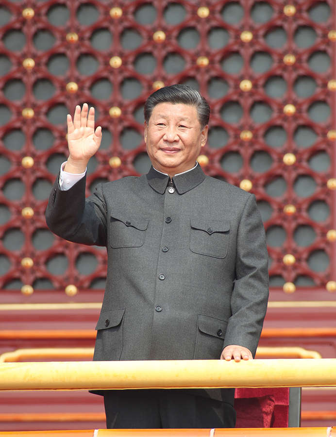 10月1日,庆祝中华人民共和国成立70周年大会在北京天安门广场隆重举行。这是中共中央总书记、国家主席、中央军委主席习近平检阅受阅部队。 新华社记者 燕雁 摄
