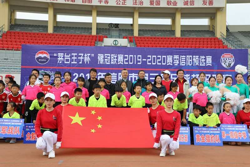 11月16日上午,信阳足球迎来一年一度的盛会,“茅台王子杯”豫冠联赛2019-2020赛季信阳预选赛暨信阳市第三届足球超级联赛开幕仪式在信阳市体育中心体育场举行。本届比赛由河商省体育局球类运动管理中心、河南省足球协会、信阳市教育体育局、信阳市体育总会指导,信阳市足球协会主办,潢川县足球协会、商城县足球协会承办,信阳市体育产业联合会、河南大别山西河旅游发展股份有限公司、信阳市多栗多绿色食品有限公司、河南活力源维德文化体育发展有限公司、商城县上石桥高级中学协办。