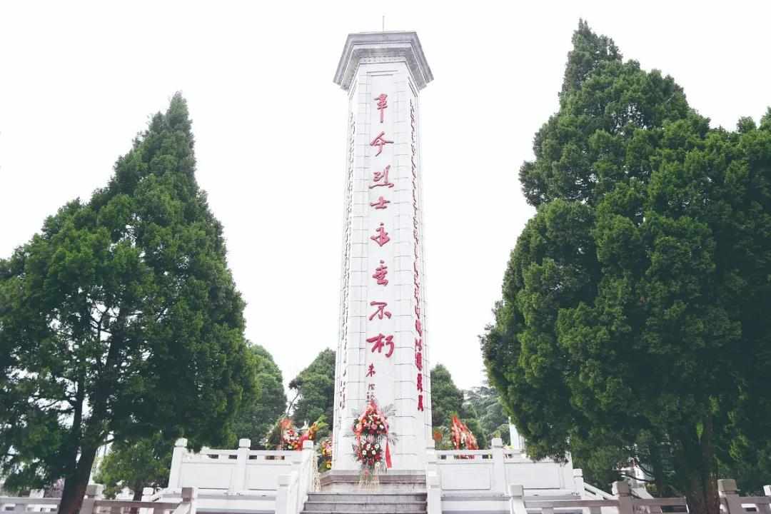 昨日,记者来到位于新县县城南白马山东麓的鄂豫皖苏区首府烈士陵园。只见陵园大门上方为李先念题写的“鄂豫皖苏区首府烈士陵园”几个鲜红大字。进入陵园,一座高大的革命烈士纪念碑矗立在面前,纪念碑正北面是由朱德亲笔题词的“革命烈士永垂不朽”几个鲜红大字,其余四面分别为许世友、刘名榜等领导同志及烈军工属的题词。