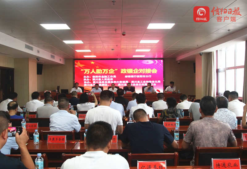 为深入贯彻落实省、市“万人助万企”活动部署,扎实开展党史学习教育,深入推进“我为群众办实事”实践活动,7月16日上午,市金融工作局联合邮储银行信阳市分行在潢川县举行“万人助万企”政银企对接会。市金融工作局局长宋昊、邮储银行信阳市分行行长刘辽峰、潢川县常务副县长赵军华、潢川县政府副县长李浩出席对接会。县金融服务中心、县工信局等单位负责人及30余家企业代表参会。
